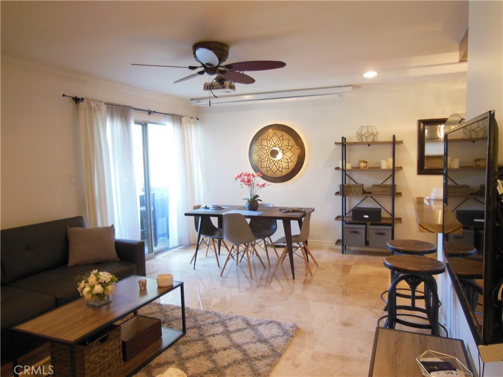Location, location, location - This gorgeous first-floor condo is located in a highly desirable Westside central location and has been recently remodeled. The kitchen has high-end kitchen cabinetry with matching built-in storage for display pieces, crystal, dinnerware or bar items, Kitchen-Aid stainless steel appliances, (including built-in refrigerator) and granite breakfast bar. Adjacent to the kitchen is a quaint dining area, a sunny balcony with views of beautiful lush landscaping and living room with wall mounted TV. The full bathroom features extensive use of travertine, a soaking tub and double vanity with a granite countertop. The spacious bedroom has a huge walk-in closet, plantation shutters and a wall mounted TV. The entire unit has gorgeous polished travertine flooring, recessed lighting (all on dimmer switches) ceiling fans and crown molding. Other amenities include community laundry facilities and one parking space. The complex is well maintained with lush landscaping throughout and has low HOA fees. This amazing property is just blocks to the hip & trendy Sawtelle Blvd shops and restaurants, and near UCLA, Santa Monica, and Brentwood. There is also easy access to freeways and to Metro Expo line.