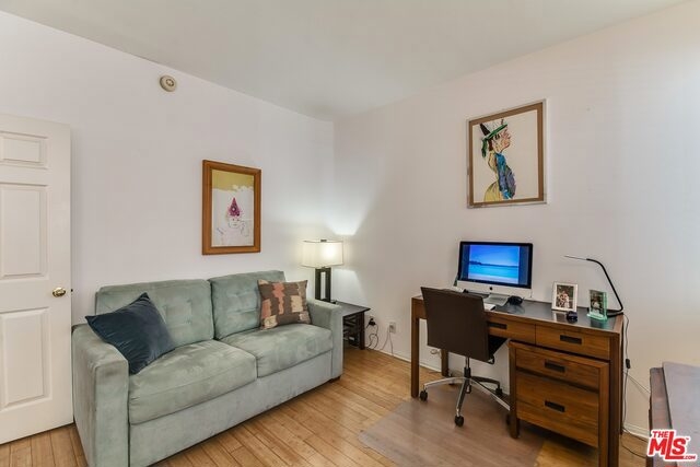Sleek and modern feeling single level 2 bedroom, 1.75 bath in the heart of WLA and close to SM. Light and bright rear unit with bamboo floors and tastefully decorated throughout. Newer contemporary kitchen with white cabinets and white ceasarstone countertops. Master bathroom has been remodeled. Central AC and Heat, Gas Fireplace in Living Room, Eastern facing balcony, Washer/Dryer in unit, Two Car parking. No common walls to other units. HOA includes EQ Insurance. Seller Lease back until July 15, 2018. Ready to move in. See the Virtual Tour. Great location - Short Walk to restaurants, shopping, light rail and more.