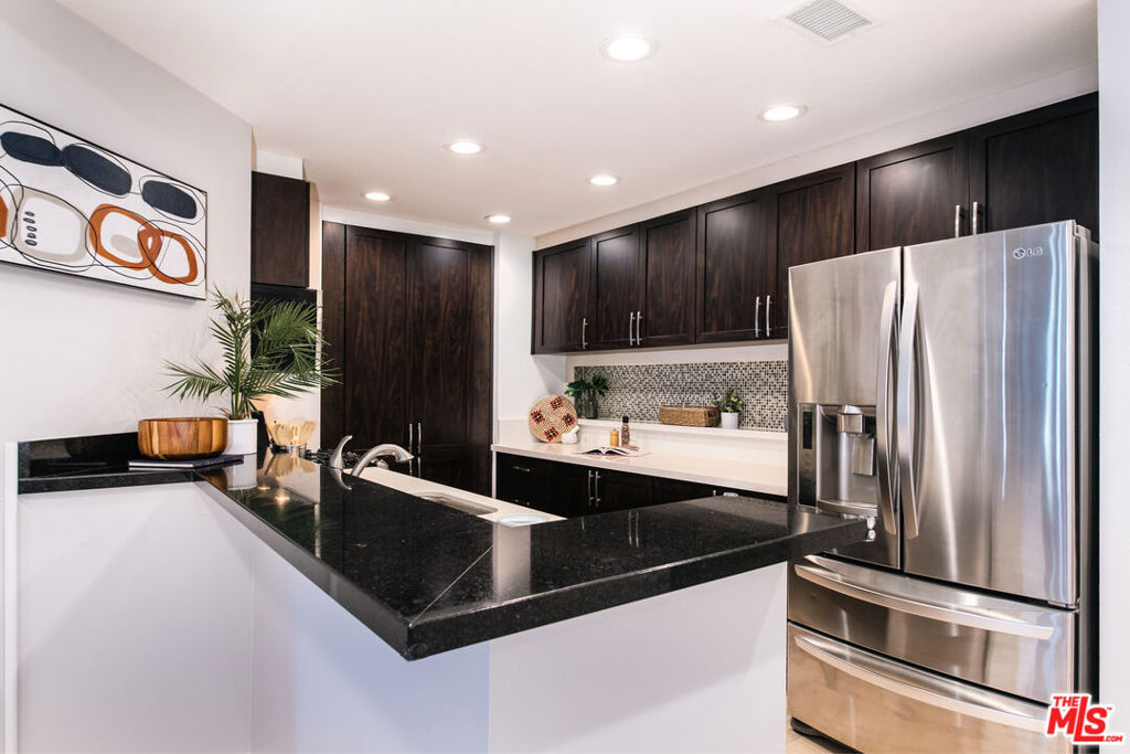 Searching for a stylish condo where you can just move in, unpack, and relax? Set in a delightful West LA neighborhood, this immaculate residence offers the best in modern living. Glass sliders in the living room usher in radiant sunlight that gleams on the engineered white-washed oak hardwood flooring as it continues into the sleek kitchen. Gorgeous dark cabinetry is beautifully accentuated by new Silestone countertops, recessed lighting, and stainless steel appliances with a double oven. Unwind in one of the two bedrooms, both with brand new carpet and Tempur Pedic carpet padding. Ultimate comfort awaits you in the primary retreat featuring patio access, a deep walk-in closet, and an ensuite bath with a heated towel rack and a double vanity. There's an elevator in the building, and you'll have a Nest thermostat and Nest smoke alarm/carbon monoxide detector, all hardwired. For extra convenience, your home comes with an in-unit washer and dryer. As a bonus, the central air conditioning system was replaced just two years ago. Convenient to everything, this incredible home really does have it all. Discover this stunning West LA 2/2 condo offering the best in modern living. Come take a tour today!