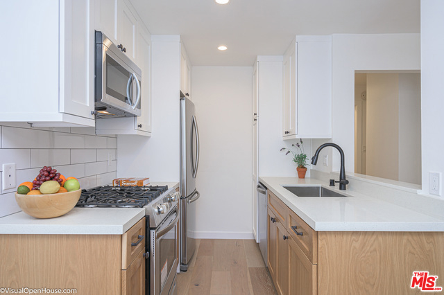 Welcome Home! Just Completed Remodel. Top floor corner unit. Airy/ light infused unit with outdoor space located in a peaceful, secured courtyard building. Stylish and timeless finishes compliment this full remodel with white oak, two tone custom shaker style cabinets - stainless steel appliances, including slide in gas range/oven and counter depth refrigerator - quartz counter tops - wide blank European white oak hardwood floors - new carpet in bedroom and living room - new recessed lighting and custom fixtures - enhance this well layed out large one bedroom with walk in closet - Full bath with matching custom cabinets, new tiled shower and fixtures. Private enclosed patio off living room with lush tree top views give an extension to the living room and open floor plan. Secured building- Low HOA dues and pet friendly. Convenient location, easy stroll to grocery stores, coffee houses, restaurants, shopping, freeway and more.