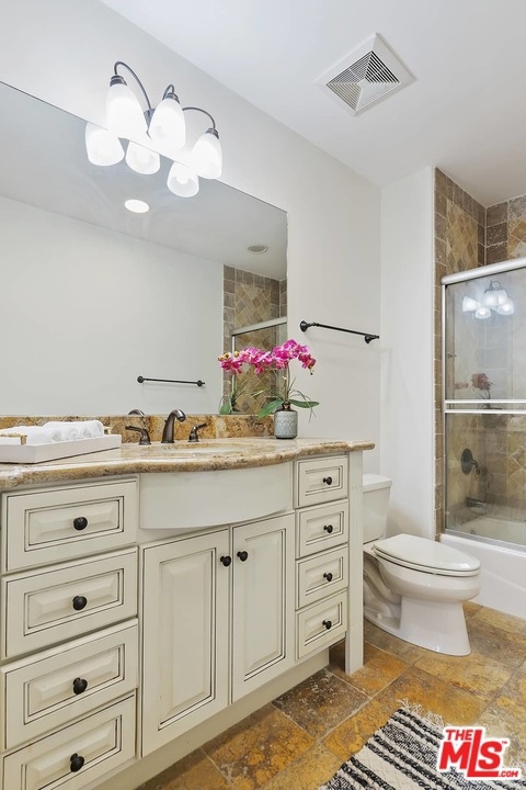 This light, bright and updated Mediterranean corner unit is complete with 3 bedrooms, 2.5 bathrooms and beautiful courtyard entry. Well appointed open living and dining rooms with high ceilings and tons of natural light. Kitchen has stone tile floors, granite countertops, custom cabinetry and top quality appliances. The kitchen gracefully opens into the living area and a separate dining area. Powder room for guests. Large master suite with walk in closet and secondary closet. Master bath has dual vanities and jetted tub. Private open air balcony off of the living room. Gated single-level garage parking with 2 tandem parking spaces and guest parking. Elevator access from the garage directly to the third floor. Lush landscaped community area for relaxing, barbecue and entertaining. In unit washer and dryer. Close to Westwood Village, Beverly Hills, Century City, Brentwood and Santa Monica.