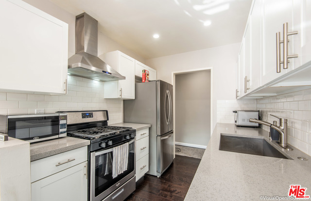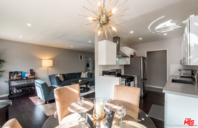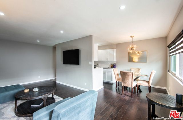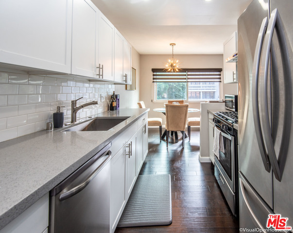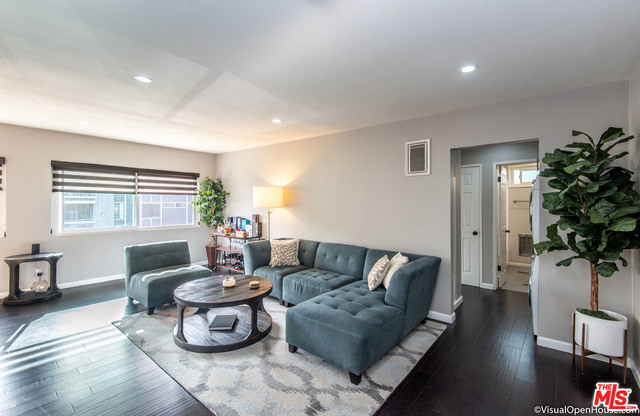 Amazing 1 BR 1 BA condo in highly sought after West LA neighborhood. Superb location within the building, top floor, front corner unit with bedroom sharing no common walls. The condo has been meticulously maintained and was completely remodeled recently. Enjoy the open floor plan perfect for entertaining with hardwood floors throughout and abundant natural light. Kitchen features stainless steel appliances and finishes, and modern white cabinetry. Stack washer/dryer combo is conveniently located within the unit and custom closets have been built around the laundry area for additional storage. Tub/shower combo and double sink vanity in bathroom. Spacious bedroom features ample closet space and wall a/c unit. One parking spot in covered carport. Building has gated entry with intercom system. Do not miss this!!!!
