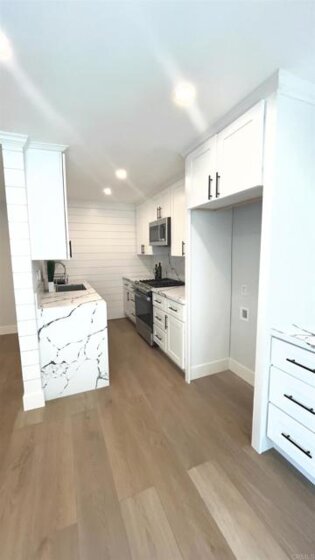 GORGEOUS REMODEL ON THE WEST SIDE! This peaceful, first floor end unit with a spacious balcony is in an amazing location. Adjacent to Stoner Park with tennis, baseball, skatepark and more...A few blocks from Santa Monica Blvd, there are more shops than you can count, but none of them are right on top of you. The 10 and 405 fwy are minutes away and Santa Monica beach is a 15 minute drive! The famous Sawtelle restaurants are right down the street. Nearby to Brentwood, Century City, Westwood, UCLA and Santa Monica. Some of the custom design features include white shaker cabinets, quartz counter tops, SS appliances, new flooring, tile bathroom, Brand New HVAC, and designer touches thruout...SHOW COLD!!