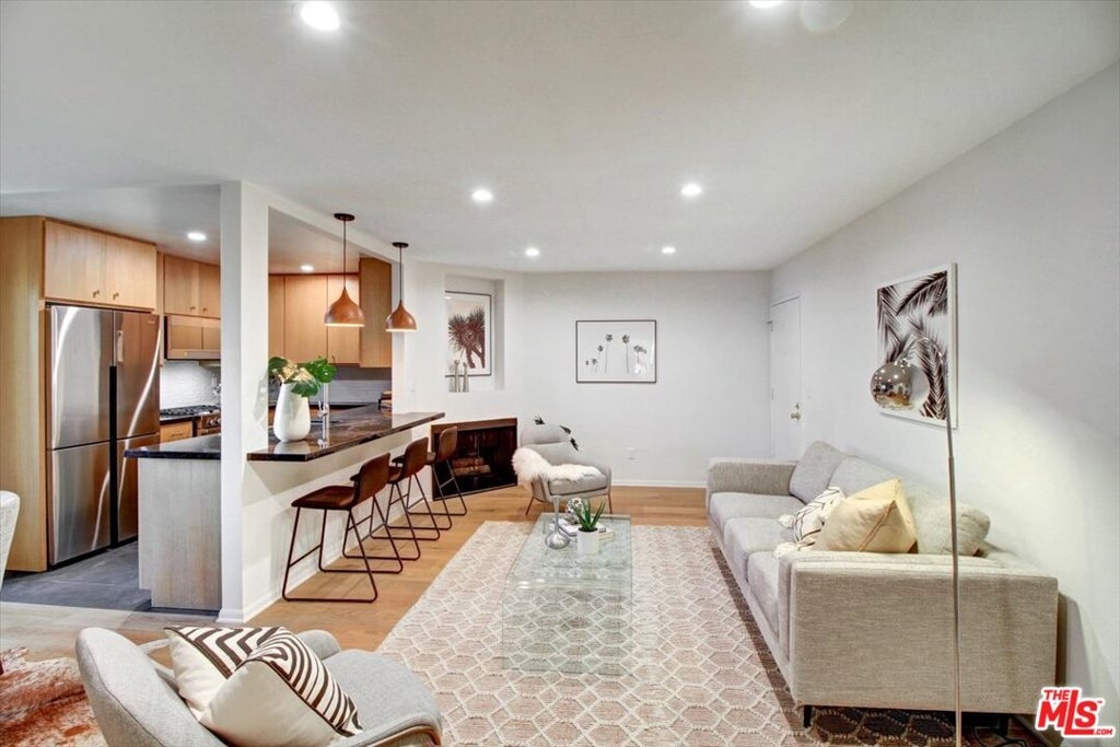 Wonderful opportunity for the Buyer who is looking for a completely remodeled 2 bed 2 bath condominium on one level. Tastefully designed with wide plank hardwood floors, new kitchen cabinets , counter tops, backsplash, appliances and stylish breakfast bar, ideal for spending time in this gourmet kitchen to entertain friends and family. Large primary bedroom with an impressive walk in closet /closet organizers. Upgraded, en suite primary bath creates a luxurious spa environment. Second bathroom with new tub, vanity, tile work and lighting. Additional features include: plenty of closet space, new windows , recessed lighting, light fixtures and new air conditioner in living/dinning area. Low HOA dues, Earthquake ins included, very close to the highly desirable Sawtelle shopping and restaurant area.