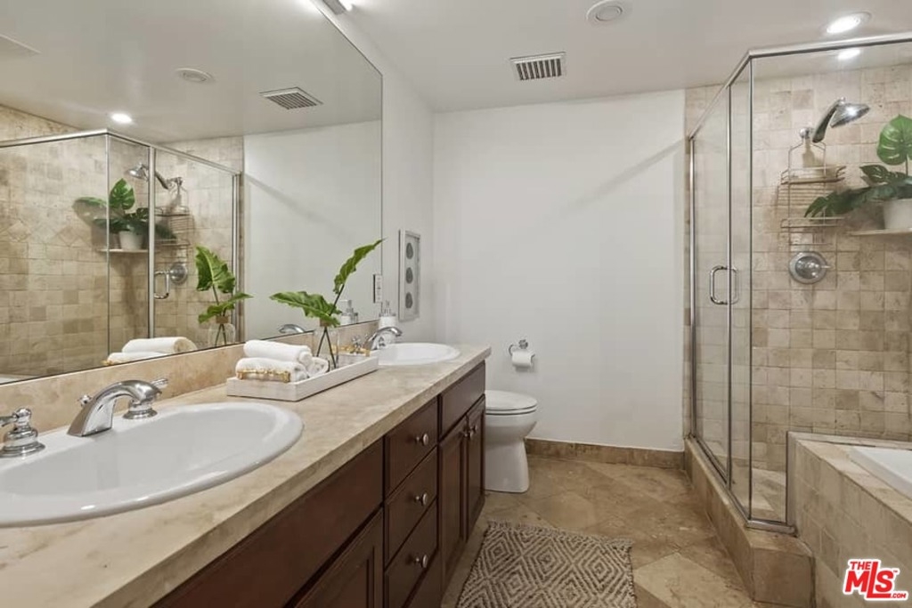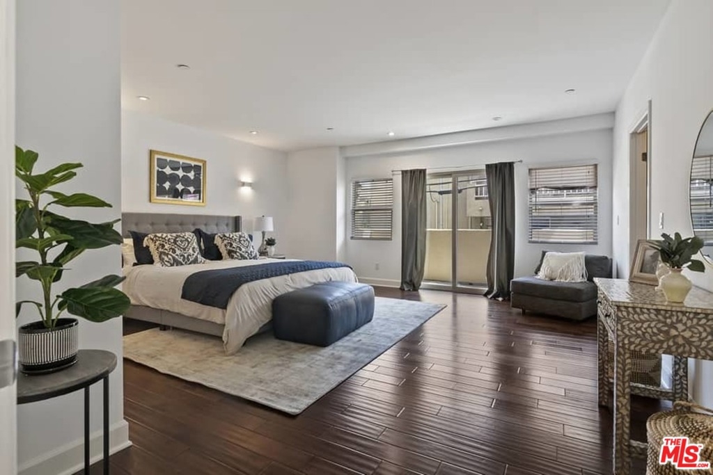 MUST SEE two-story condo with two huge master suites! Luxury two-story, 3 bedroom and 3 full bath condo, in a controlled-access, beautiful Mediterranean courtyard style building. Ideally situated between Brentwood and Santa Monica, dubbed a "location paradise," with a walk score of 92. The Great Room floorplan is ready for entertaining flowing from the Gourmet Cooks' Kitchen, to the Dining Area, Living Room with cozy Fireplace, and to the Outdoor Patio seating area. Completing the first floor is the perfect office, which could also be used as a bedroom, and a full bathroom. The upper level has two bedroom suites, each with HUGE walk-in closets, private balconies off of the bedroom, and en-suite baths. The primary has a beautiful spa-like bathroom with dual sinks, a stand-alone shower, and a separate bathtub. Laundry is on the second floor as well. Other features include central heating and A/C, wood floors throughout, freshly painted and turn-key! Building also has a rooftop deck with spectacular city views. Close proximity to shops, restaurants, parks, Brentwood Farmers Market and San Vicente shops. Close to UCLA, Google, 405 & 10 freeways, and Beaches. Welcome to your turnkey ready home!