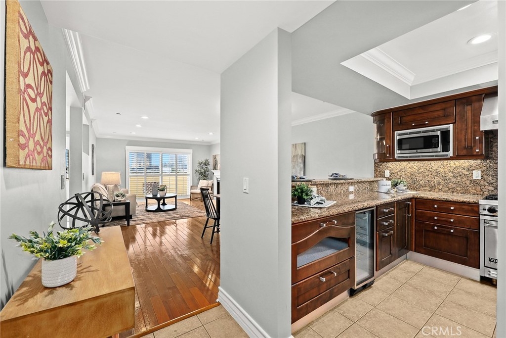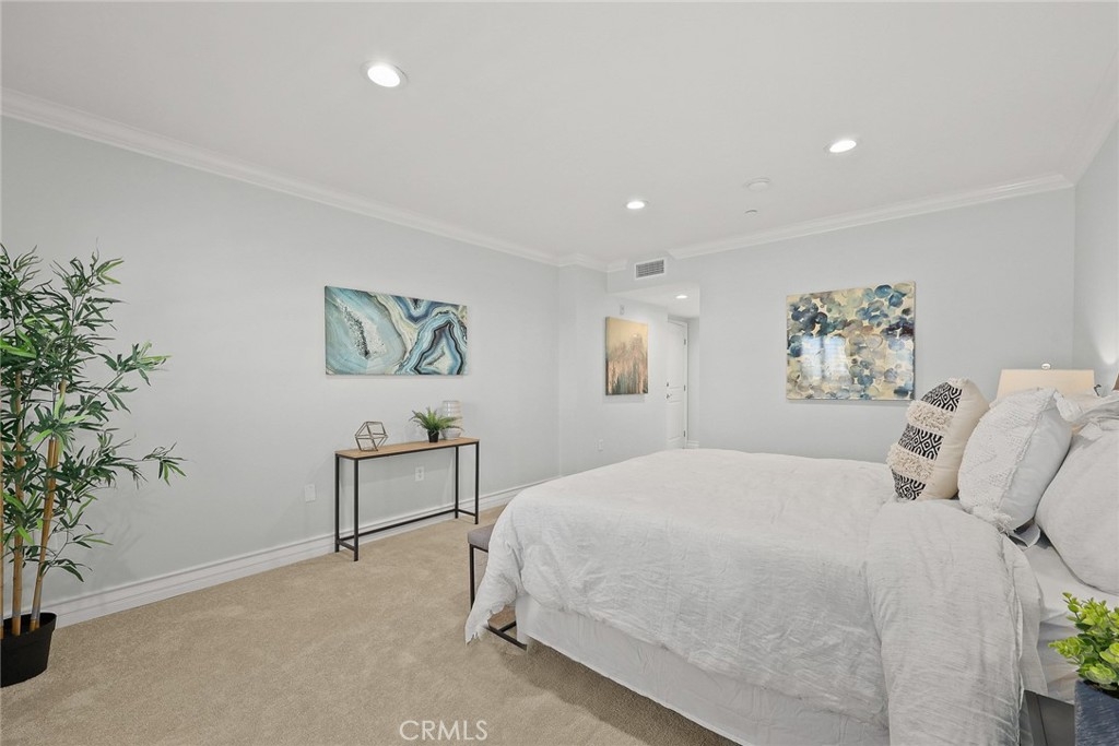 A RARE opportunity in prime Brentwood adjacent location! This front-unit PENTHOUSE offers 3 spacious bedrooms, 2.5 bathrooms with spectacular views of the city and ocean. An open layout and seamless access to two private balconies. It offers solid wood flooring, plantation wood shutters, crown moldings, double-height baseboard, and lots of natural light. Brand new carpet, designer paint and LED recessed lights. Living room is open to the kitchen and has an inviting fireplace. The chef’s kitchen has granite countertops, custom cabinetry, breakfast bar, and top-of-the-line appliances (Viking 6 burner stove, Viking wall hood, Viking dishwasher, Jenn-Air refrigerator and U-Line wine cellar.) Oversized master bathroom with travertine shower, soaking tub, dual vanities & large walk-in closet. This is one of the few units that have non-tandem parking. Inside side-by-side laundry area. Washer/dryer included. Amenities include secured entry, gated subterranean garage, extra guest parking, rec room, and sundeck for summer nights. Fire and earthquake insurance is included in the HOA due. Santa Monica Beach is nearby along with Montana Avenue, Westwood, museums, trendy coffee shops, and many great restaurants. Close to Whole Foods, Trader Joe's, Bristol Farms, Ralph's, Amandine, and Literati Cafe. This is the one you've been waiting for!