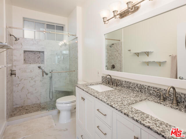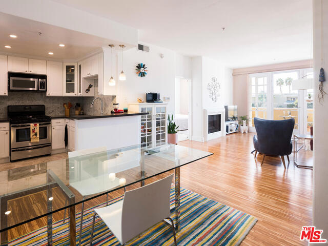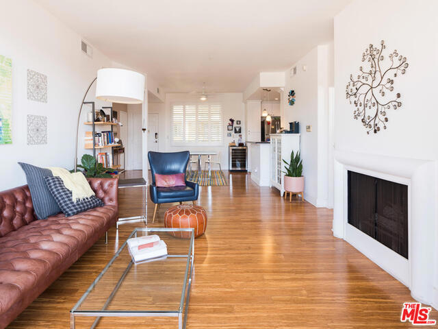 Move-in ready designer redone condo featuring 2 bedrooms & 2 baths, in the heart of the Westside, only half a block from Wilshire blvd. and all that Brentwood has to offer (check the Walk score). Beautiful west facing unit with whimsical city and sunset views. Light & bright open floor plan with wood floors in living area, high ceilings, gas fireplace in living room, large master suite with updated bathroom, large walk-In closet. Low HOA with earthquake insurance. 2 parking spaces PLUS large (apx. 7 x 8 ft.) private storage space. A great place to call home.
