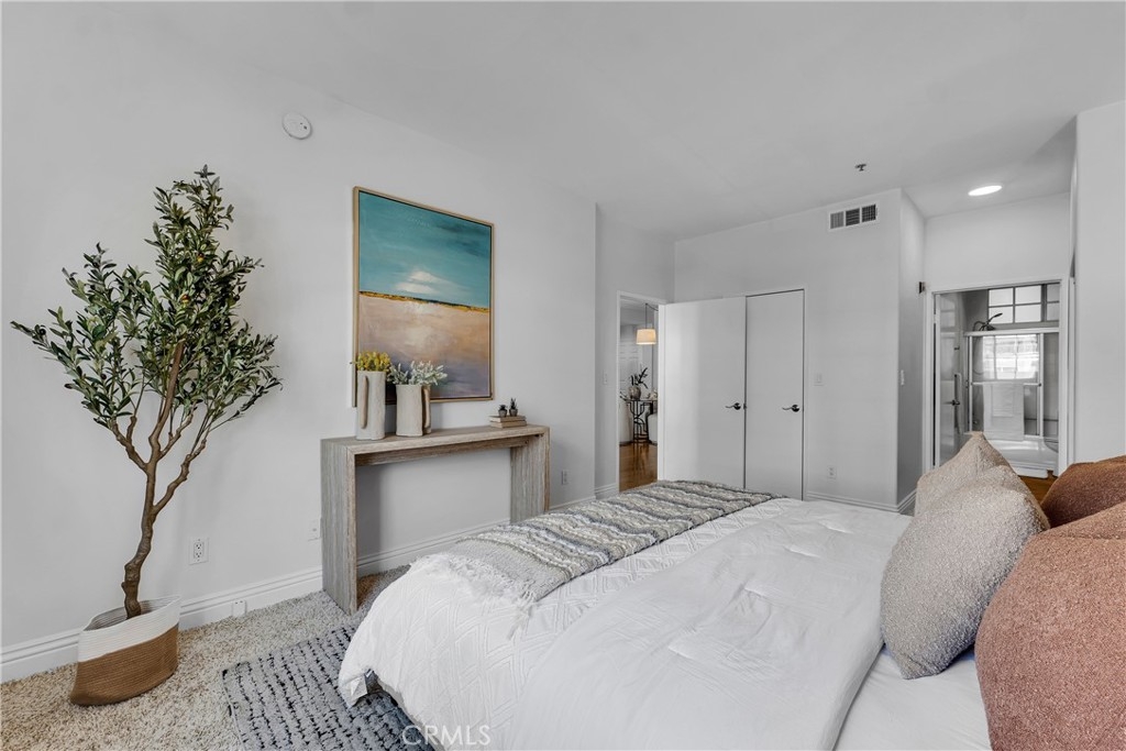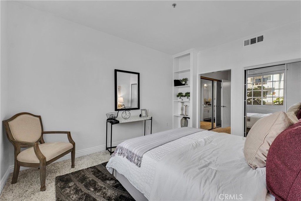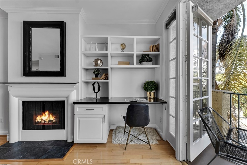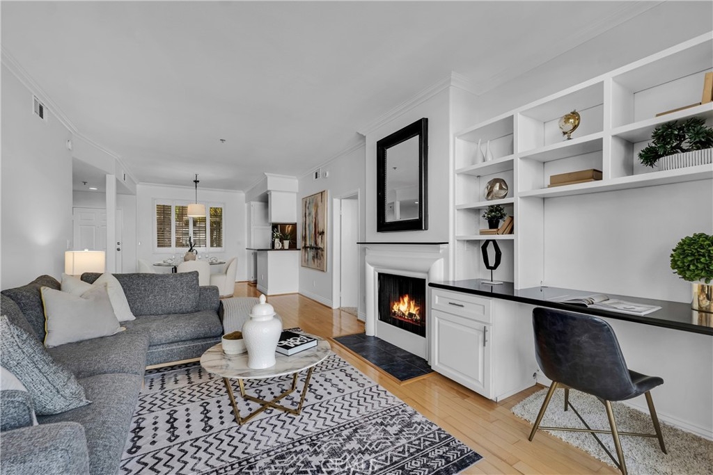 Experience the very best of Westside living in this Brentwood- and Santa Monica-adjacent, stunning single-level front-facing condominium nestled in a small, intimate complex—centrally located near popular neighborhood favorites and just minutes from the 405, 101, and 10 freeways for the perfect blend of lifestyle and convenience. A secure courtyard entry—framed by lush, tranquil landscaping—sets the tone for this peaceful retreat, while controlled access to both the building and elevator ensures privacy and peace of mind. The elevator opens just steps from your front door, and two assigned tandem garage spaces near the elevator make coming and going effortless. The lovely living room features fresh paint, hardwood floors, and an inviting gas fireplace flanked by a beautiful built-in desk and custom shelving—creating the perfect backdrop for relaxation, work, or entertaining. French doors lead to a sun-drenched balcony—ideal for morning coffee or evening cocktails. The updated kitchen boasts granite countertops, a tray ceiling, ample cabinetry, and stainless-steel appliances, plus a convenient breakfast bar—perfect for casual dining or gathering with friends. Both bedroom suites feature brand-new carpet, exceptional closet space, and spacious en-suite bathrooms with dual vanities. Elegant crown moldings throughout lend a touch of sophistication, while modern comforts like central air & heat controlled by a Nest thermostat and an in-unit washer/dryer ensure everyday ease. Additional highlights include a separate guest garage, a large private storage closet, an intercom entry system, and low HOA dues. Stroll to top restaurants, bars, cafes, bakeries, boutiques, and shops, or venture to nearby Santa Monica, Sawtelle, UCLA, or the beach in minutes. With LA’s best dining and shopping just moments away, this airy, serene home offers the ultimate Westside lifestyle.