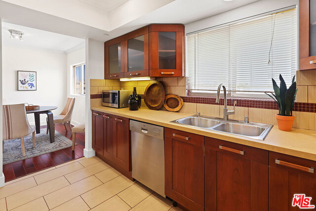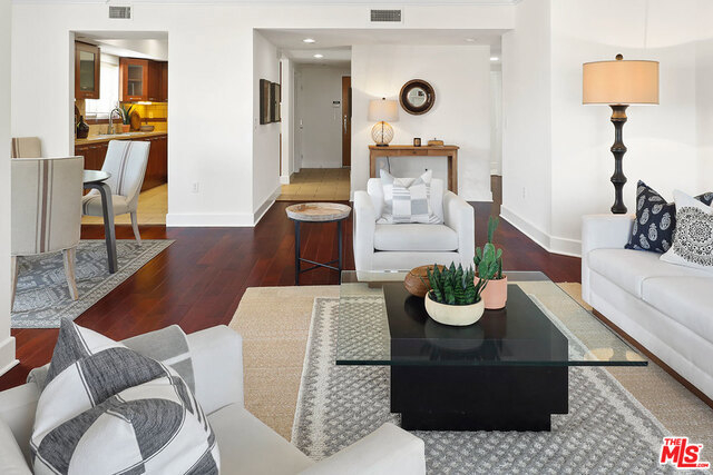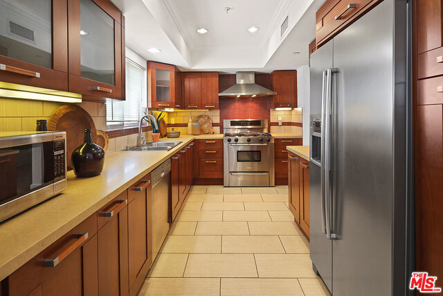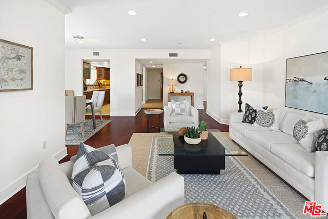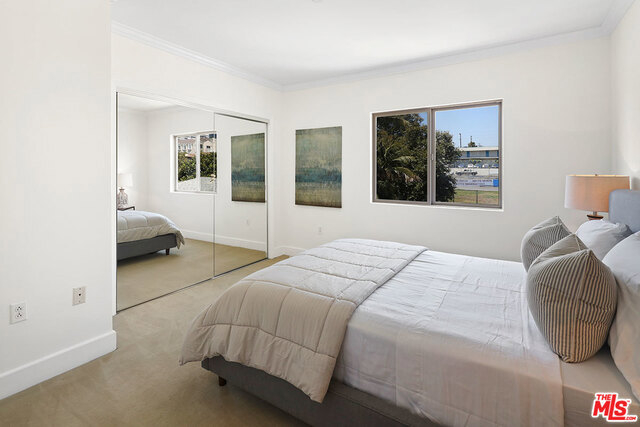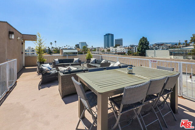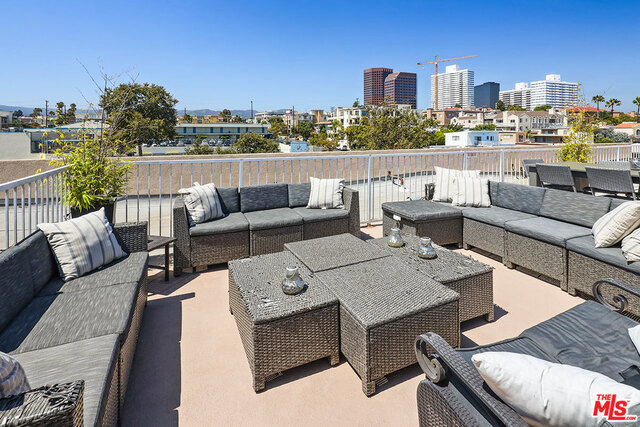 Spacious front facing 3 bedroom, 2.5 bath condo in great West LA location. Exclusive 8 unit building with only 2 units per floor. Living area with beautiful wood floors, recessed lights, crown moldings and fireplace. Large gourmet kitchen with quartz counters, custom Italian cabinetry and stainless steel appliances. Generous master suite with walk in closet. Master bath with quartz counters, dual sinks, soaking tub and walk-in shower with sitting bench. 2 Additional bedrooms share an elegant full bathroom. Sleek powder room. Lovely large balcony. Inside laundry closet with side by side washer and dryer. Security system. Large furnished common area sundeck, guest parking and more.