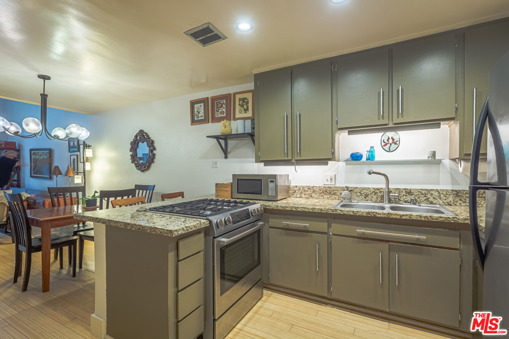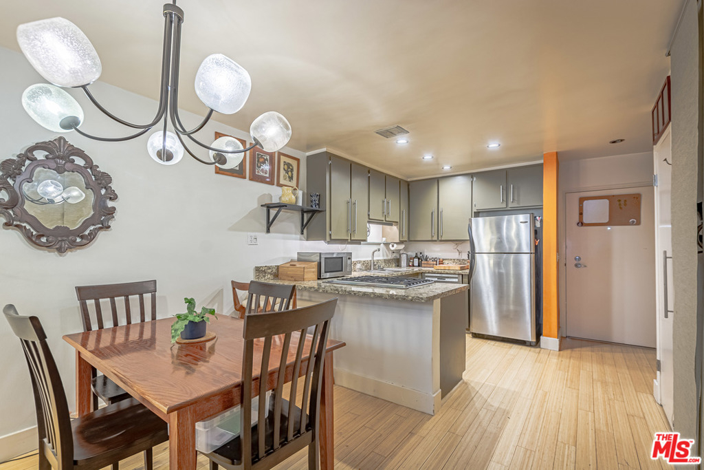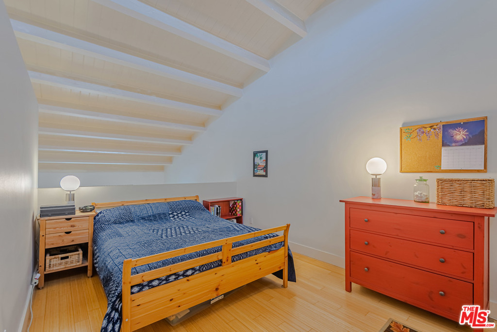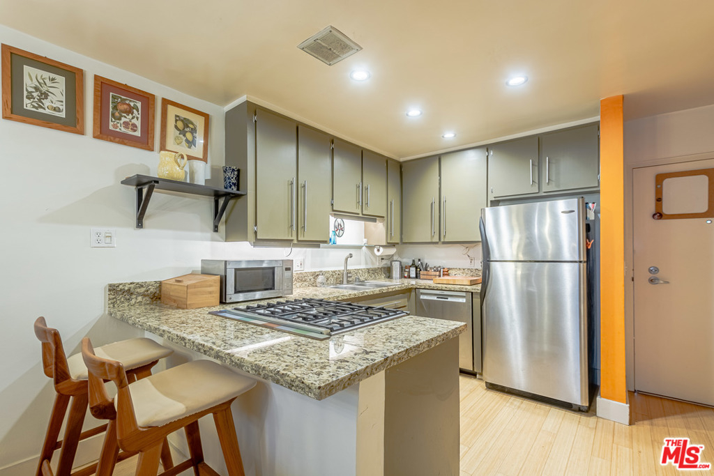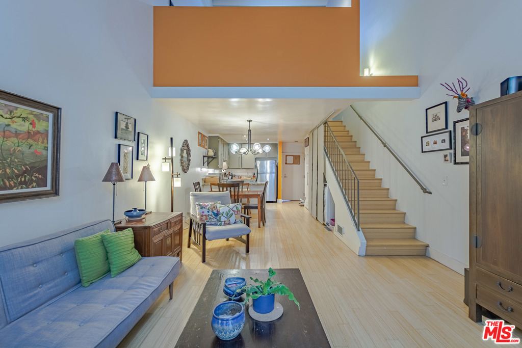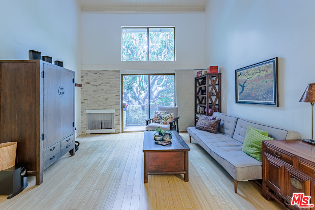 Loft-style 2 story 1 bedroom 1 bathroom Condo with soaring sloped ceiling in the living room and bedroom loft. Front-facing unit with a balcony shaded year-round by trees that also give great privacy. No neighbors above or below. The lower level is open-concept with bamboo floors throughout and a fireplace in the living area. The kitchen has granite counters, a breakfast bar, and stainless steel appliances. The laundry area is off the kitchen and has a washer and a dryer. Great West LA Location close to UCLA Brentwood and Santa Monica. Close to Target and other shops and restaurants on Santa Manica Blvd and convenient for Trader Joe's and Ralph's. Easy Access to the 10 and 405 Freeways and public transit routes along Santa Monica Blvd.