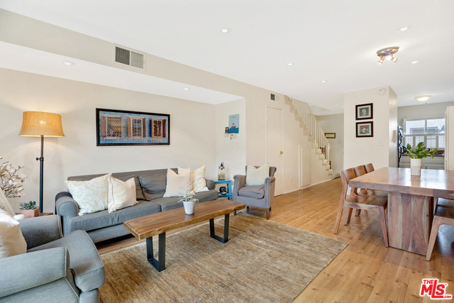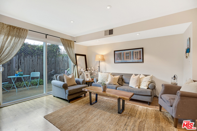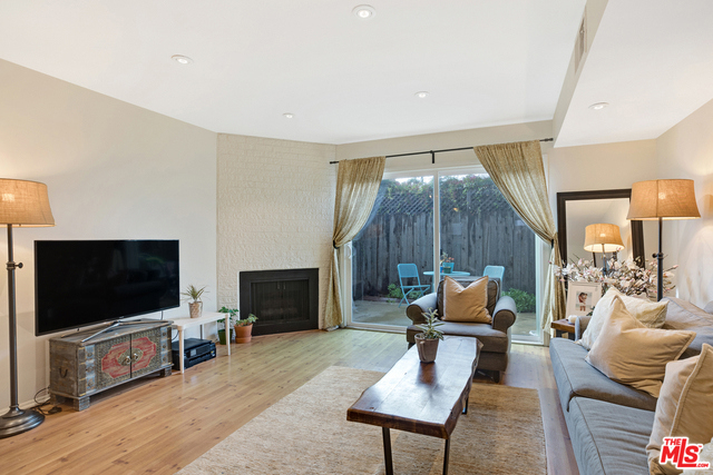 Updated 2 bed/2.5 bath townhouse with outside patio located on quiet rear side of complex. Ideal 2 story floor plan that feels like a your own home as you walk to your own front door. Entry with closet opens to living room w/ fireplace & sliding door to inviting outdoor space w/ sunny patio & garden. Dining area opens to kitchen w/ stainless steel appliances including gas range/oven and stacked laundry area. Powder room located downstairs. 2 bedrooms upstairs including master suite w/ vaulted ceiling, large closet & attached 3/4 bath w/ tile finishes. 2nd bedroom w/ walk-in closet & full bath in hallway area. Additional features include recessed lighting, contemporary wood-like flooring downstairs, all newer dual pane windows and sliding door, central ac/heat, laundry in-unit & shades on bedroom windows. Pets ok, 2 tandem-secured parking, extra storage, guest parking & low $300/month HOA dues. Close proximity to prime West LA retail, restaurants & Trader Joe's! Move-in ready!
