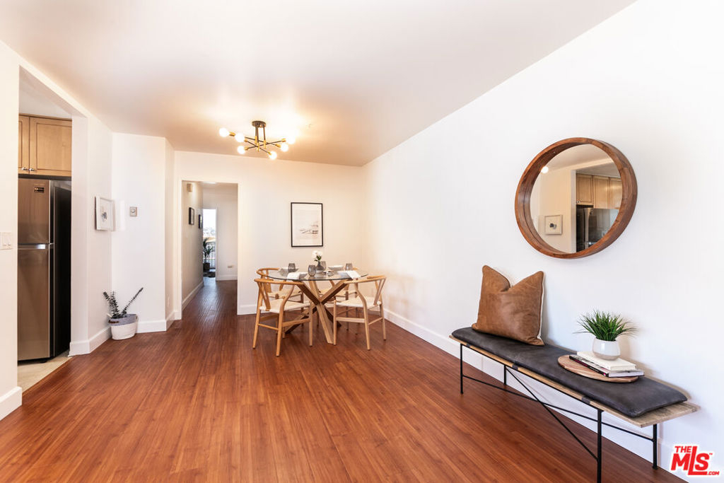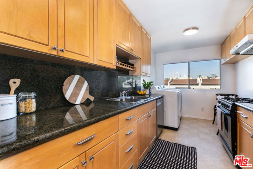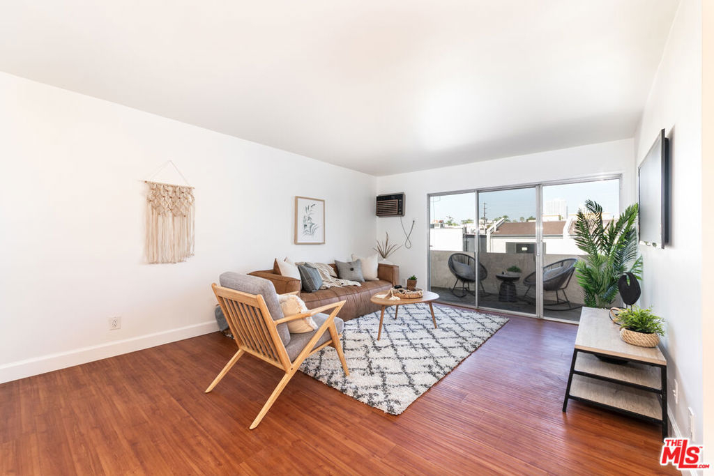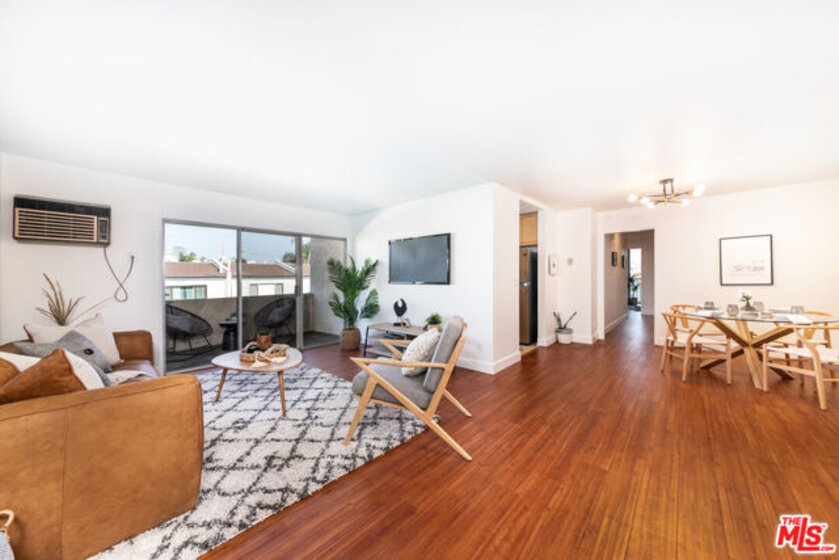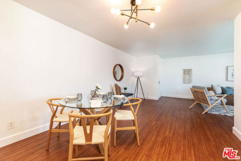 Ready to experience the laid-back lifestyle in a WLA condo where you can simply move in, unpack, and enjoy? Discover this front-facing, top-floor corner residence that's bathed in natural light. Step inside the bright and open interior where freshly painted walls are accentuated by gleaming hardwood-style flooring that flows throughout. Gather in the living room before seamlessly flowing into the dining area where you'll savor meals under the soft glow of chic lighting. Delight the home chef in the cheerful, galley-style kitchen equipped with plenty of gorgeous cabinetry, granite countertops, and stainless steel appliances. Wake up refreshed in the comfort of the private retreats, including the well-sized primary bedroom with a tastefully tiled ensuite. Glass sliders lead to your private balcony where you can sip your favorite beverage or dine al fresco as you take in the views. Treat yourself to the convenience of 2 non-tandem parking spots, as well as an ideal location close to Brentwood, Santa Monica, and UCLA. Plus, there are many shopping and dining destinations nearby. Come for a tour before the opportunity passes you by!