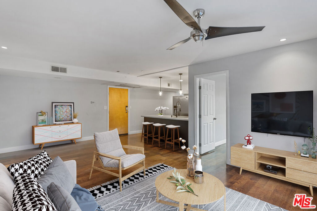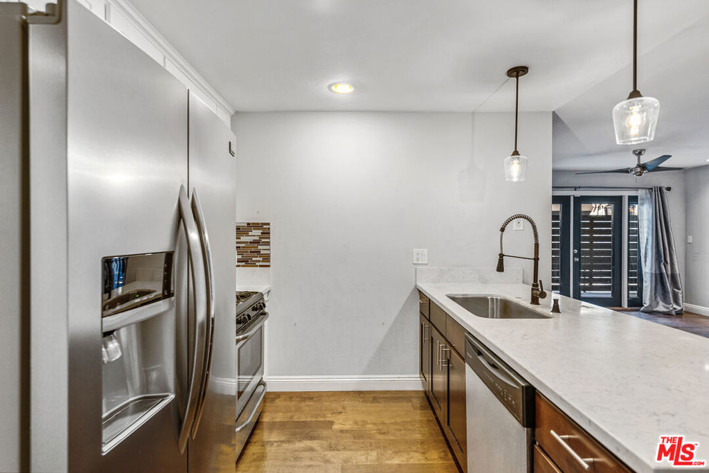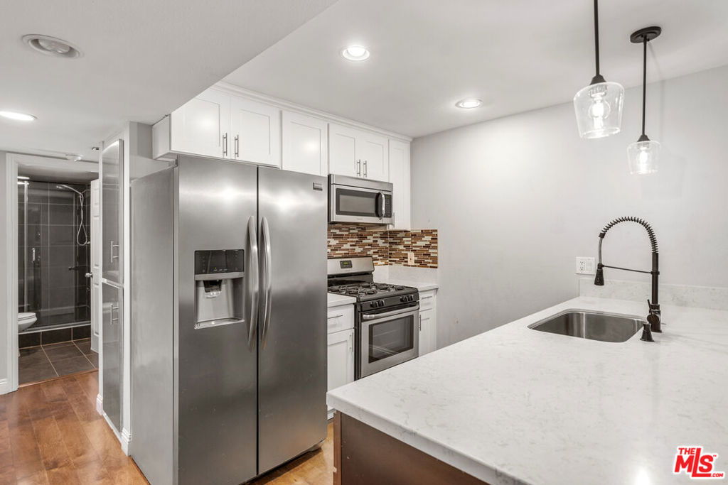 Completely remodeled 3 bedroom + 2 bathroom condo with an amazing floor plan and oversized balcony. The stylish kitchen has a glass tile backsplash, custom stone countertops, stainless steel appliances, contemporary cabinets, and new fixtures. This condo has hardwood and tile flooring, ceiling fans, recessed lighting, custom paint, new french doors, and dual pane windows. An open dining and living room that is great for entertainment. The primary bedroom is spacious with a walk-in closet, carefully designed bathrooms, and an in unit washer and dryer closet. There is a private and spacious enclosed patio perfect to enjoy Los Angeles weather. This condo shares only one common wall. The complex is secured, located in a quiet area and has been extensively renovated with support from the HOA and has an exercise room. The unit has two tandem parking spaces in the gated garage. Close proximity to UCLA and "Little Tokyo" at the Sawtelle Blvd corridor where you can enjoy restaurants, shops, and entertainment. Don't miss out on this beautifully renovated condo in the prime of Los Angeles!