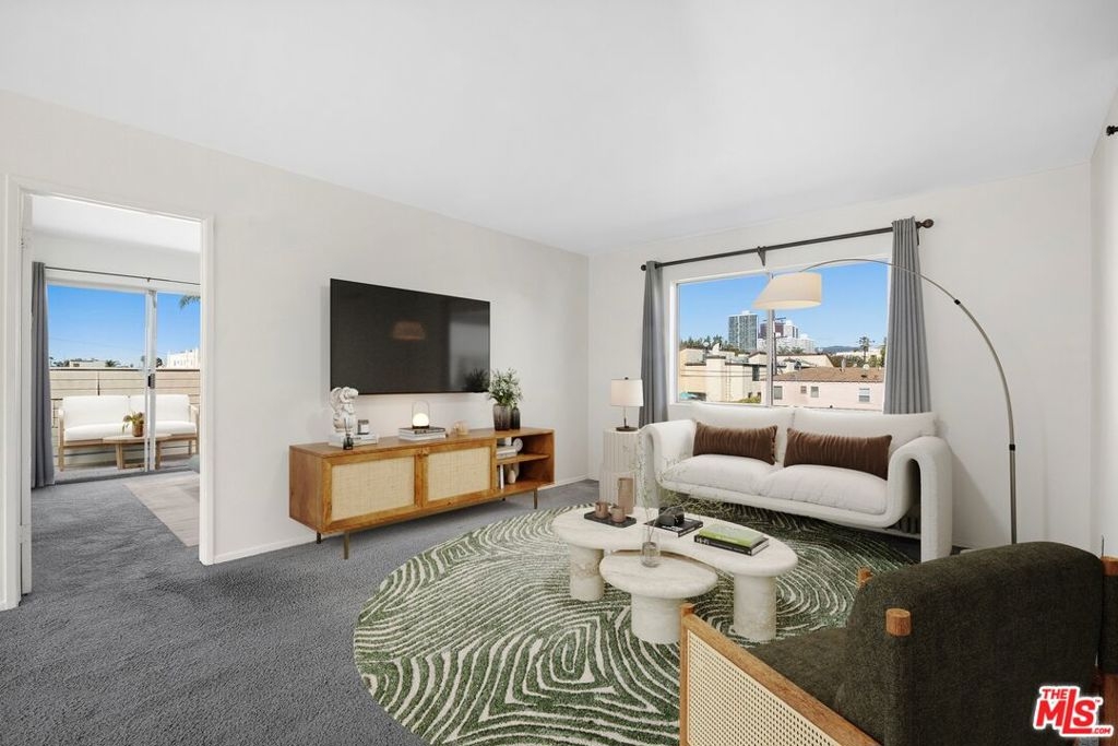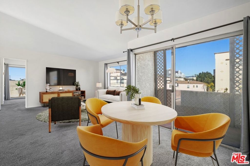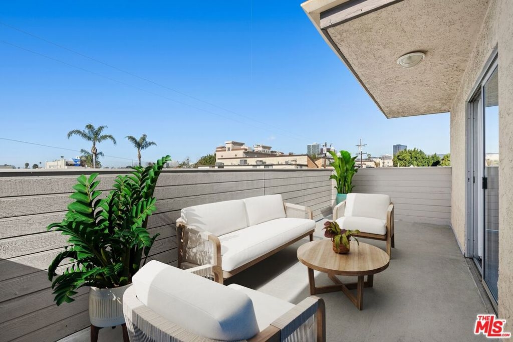 With its open floor plan, natural light, and wonderful views, this condo offers a bright and airy 1 bedroom, 1 bath, top floor unit in the heart West Los Angeles. Within the unit, you'll find separate dining and living areas and additional space for a desk/home office. The open kitchen looks out to one of two private outdoor spaces with tree-top views. The primary bedroom overlooks the city and has access to a rare, spacious private outdoor patio perfect for al fresco dining or morning coffee. Whether you're entertaining guests on the outdoor patio, working from home in the office space, or simply relaxing in the living room, you'll love the easy flow and comfortable feel of this lovely condo. Located near Santa Monica Boulevard with its abundance of coffee, shopping, and restaurants.