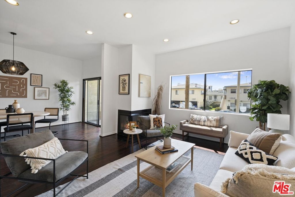 Welcome to this front facing, sun-filled 2 bedroom and 2 bathroom Brentwood Adjacent condo! The unit has an inviting entry and corridor that separates the spacious primary en-suite bedroom from the main living space for added privacy. The open floorplan lends itself to entertaining, from the open kitchen with counter seating, to the living and dining room which opens up to a generous size balcony, or enjoy the fireplace in the living room. The high ceilings make this unit feel open and airy. There is an additional outdoor private/gated area that runs the length of the unit that can be used for storage, play area or add'l entertaining, this space solely belongs to this unit. Other notable perks include: no common walls, washer & dryer inside unit, central air & heat, side x side parking with guest parking in gated garage. This excellent West LA neighborhood in walking distance to restaurants, shopping and public transportation. Minutes away from UCLA, and close to the 405 & 10 Freeways, and Santa Monica beaches.
