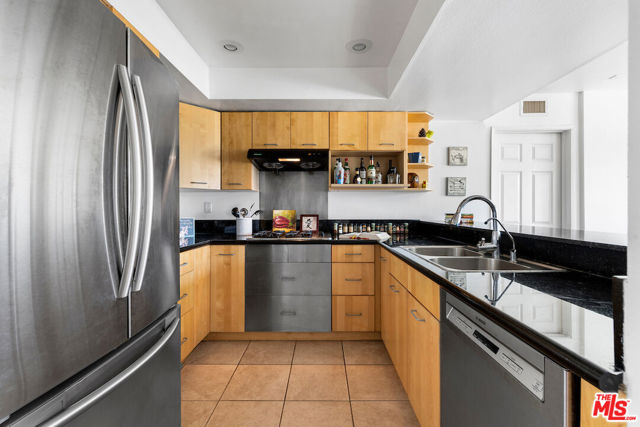 Incredible Value on this Contemporary Condo in West L.A.! Rare condo with an oversize private 2 car garage with outlet and faucet. This Brentwood adjacent unit is front facing Southwest corner with only one common wall. Single level unit above street level. The building also offers guest parking spaces. Laminate floor and double pane windows throughout and a large private patio and balcony. Fireplace in living room, spacious dining area, kitchen with stainless steel appliances, granite countertops with breakfast bar and wine fridge. There is an inside laundry, generous size bedrooms and a master bath with spa tub. This is a pet friendly building and Homeowners dues include water and earthquake insurance. A block to Brentwood and close to UCLA, restaurants, shops and services. Minutes away to Santa Monica, beach, Century City and Beverly Hills.