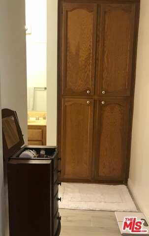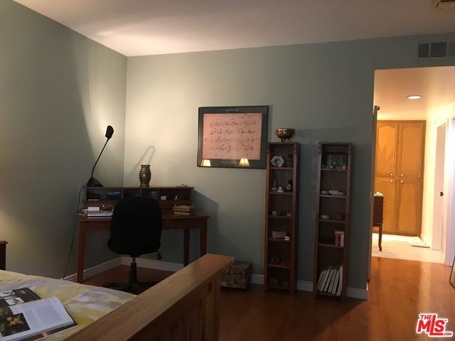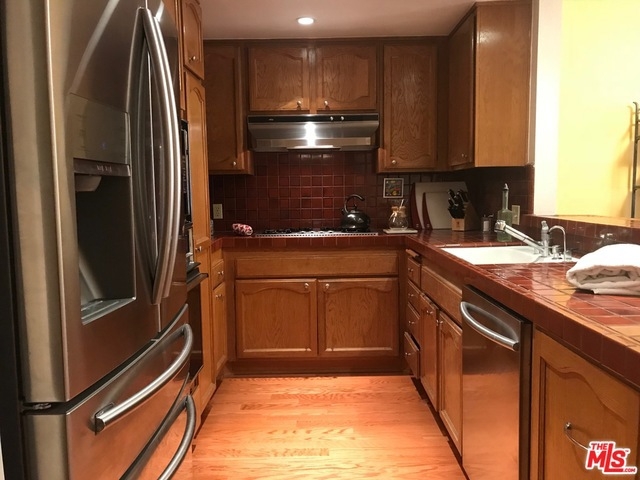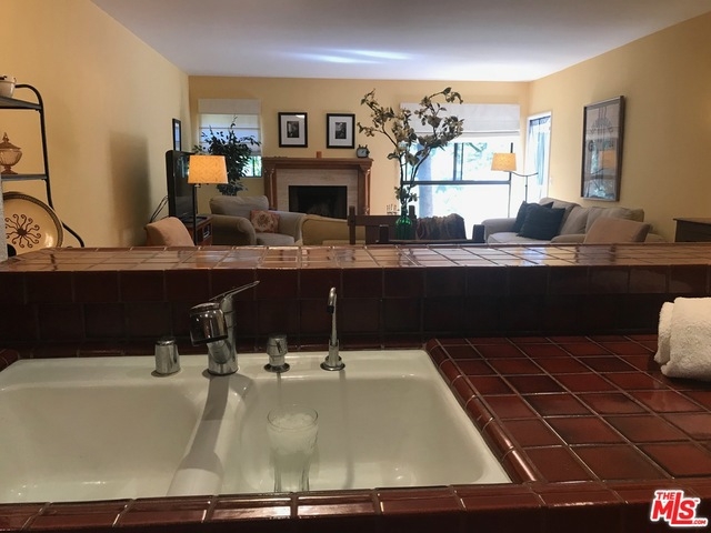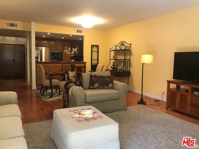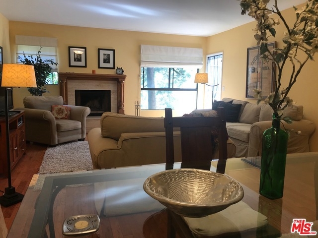 Adjacent to Brentwood Locale. Living is joyful in this generously proportioned single level Condo with formal entry and Coat closet. Open Kitchen has tile counters, refrigerator, gas stove and pleasant breakfast counter. Entertainers dining area is combined with the hi-ceiling living room and a sexy fireplace that opens into a well appointed balcony. Wall to wall mirrored door closet and the luxury bath are in the hallway leading to the large 2nd Bedroom W/mirrored closet door & access to balcony. Sumptuous master suite includes an area for sitting/work and a big walk-in and a door to balcony. Master bath has tub, separate shower, DBL sink & linen closet. Other amenities are: Washer &Dryer inside, Wood shutters, customized curtains , HWD & tile FLRS, forced air & heat, 2 PRKNG+Storage. Pet friendly BLDG has key operated elevator from GR, 4 GST parking, security camera in gated GR. & EQ Insurance. Close to shops, stores, Resturants, 10 & 405 FWY. Easy to show!