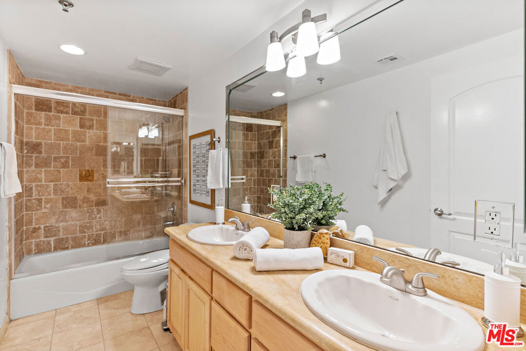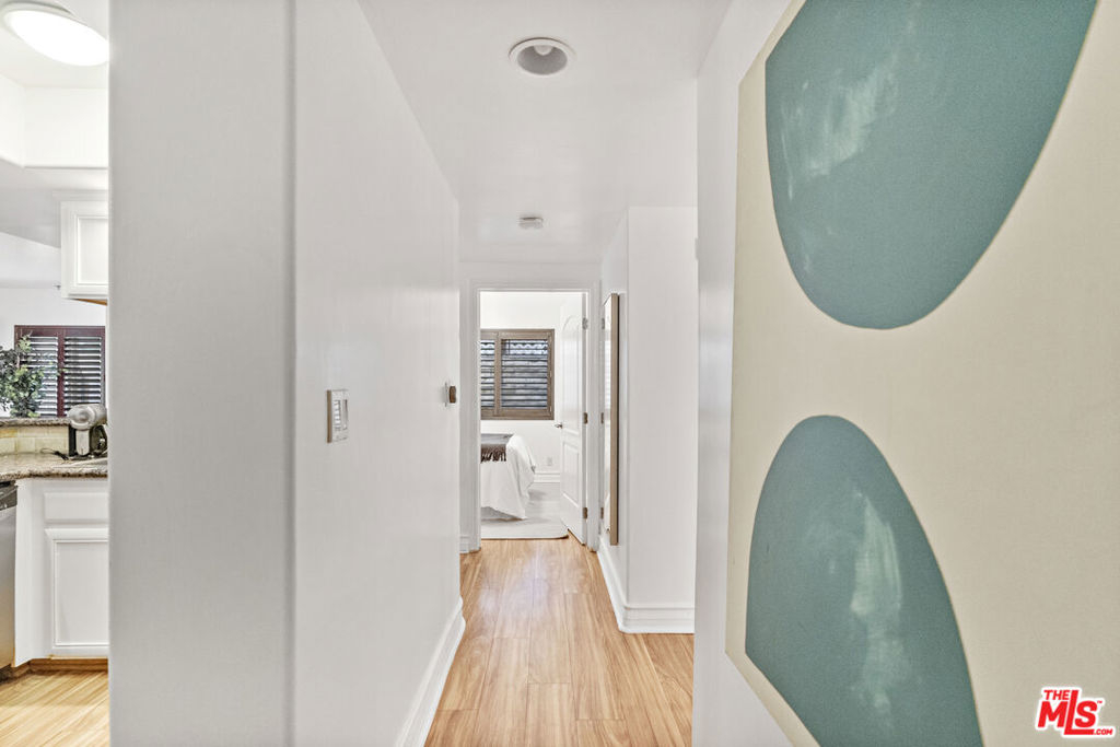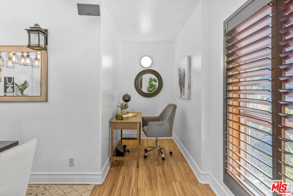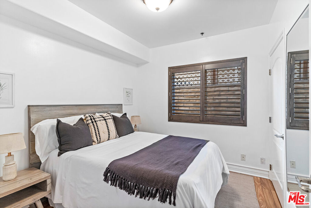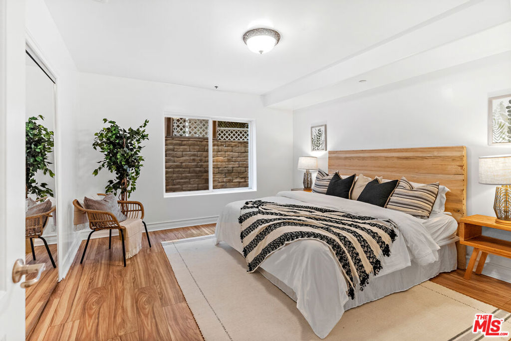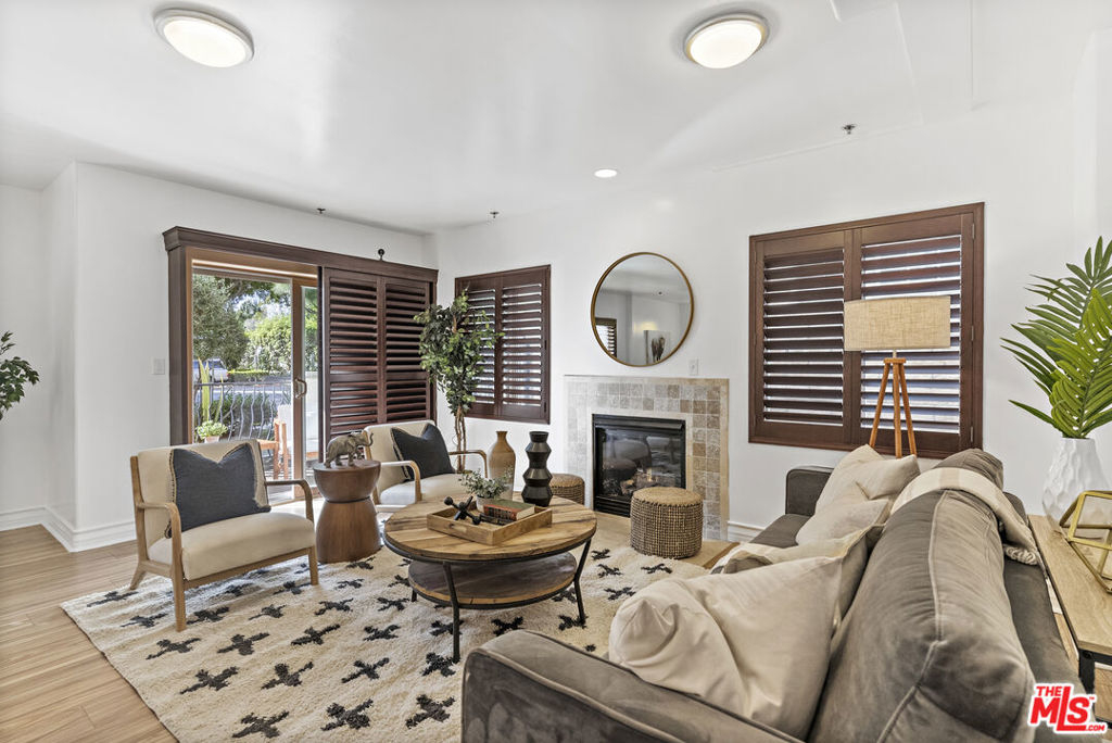 Desirable and Updated Condo in West LA! Nestled in the gated building of Centinela Villas and richly engulfed in nearby amenities, this 2BR/2BA, 1,051sqft home is only steps from desirable shopping, Trader Joe's, Blue Republic CrossFit Gym, multiple restaurants, Chase Bank, and Starbucks. Styled to reflect modern needs, the openly flowing floorplan welcomes with beautiful wood flooring, a flood of natural light, a warm color scheme, plantation shutters, and a massive living/dining area with a gas fireplace, office nook, and sliding glass doors to the private patio. Easily prepare meals in the semi-open concept kitchen, which features stainless-steel appliances, granite countertops, travertine flooring, a gas range, ample wood cabinetry, and a breakfast bar. Suited for relaxation and recharging after a long day, the spacious primary bedroom includes a sizable mirrored closet and an attached en suite with dual sinks and a shower/tub combo. One additional bedroom is abundantly accommodating for long-term guests. Other features: 2-dedicated parking spaces (close to front door), in-unit laundry area, surround sound wiring, rooftop deck with stunning views, quick access to I-10, close to schools, Santa Monica Business Park, cafs, Amazon Studios, Santa Monica Airport, and parks, and much more!