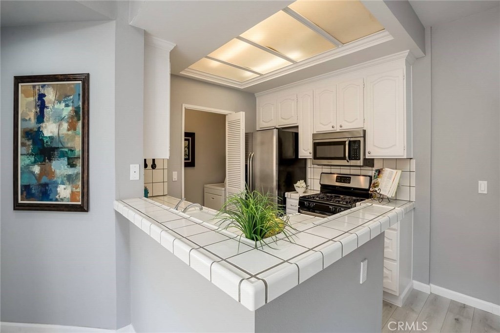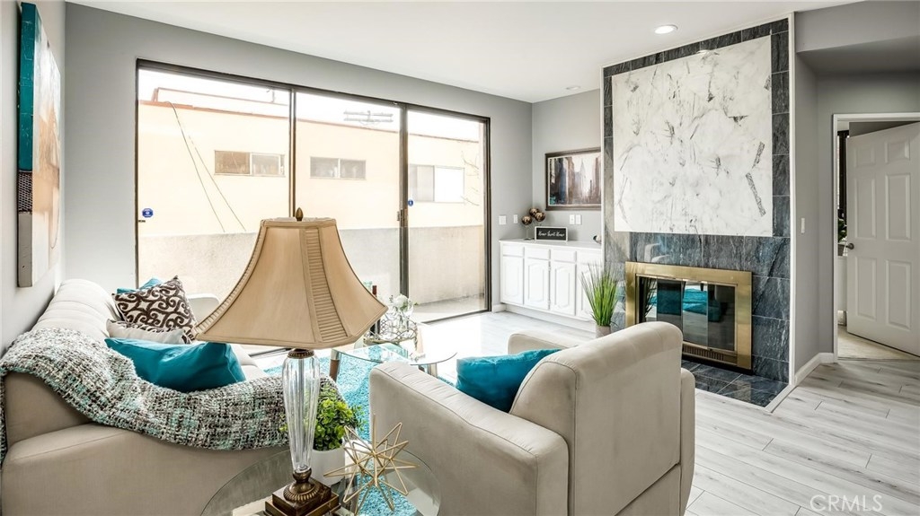 High in Demand - Affordable 2bed/2bath condo in popular Sawtelle Area. Rear end unit above parking (not on ground level). Double-door entry to open kitchen/dining/living space with fireplace and adjacent balcony. New laminated floor and recessed lights. Newer carpet in both bedrooms. Bedroom & full bathroom are located on each side of living room for privacy. Second balcony off master suite. Private laundry by kitchen. Newer Central A/C. Secured building with 2-car tandem parking space. HOA includes hot & cold "soft" water, trash, EQ insurance. Walk to trendy Sawtelle Japan Town. Great access to 10 & 405 Fwys. Convenient to UCLA, Santa Monica & Brentwood. You cannot beat this location - center of all city lifestyle has to offer. Don't miss this opportunity!