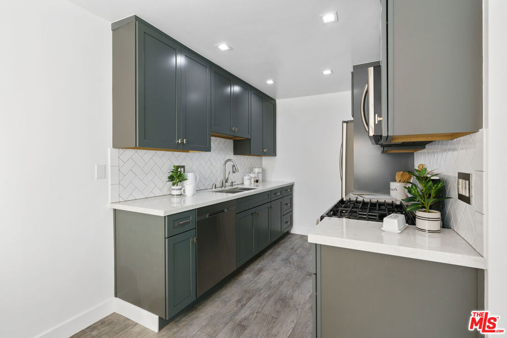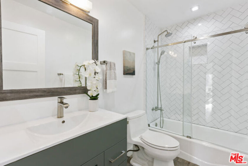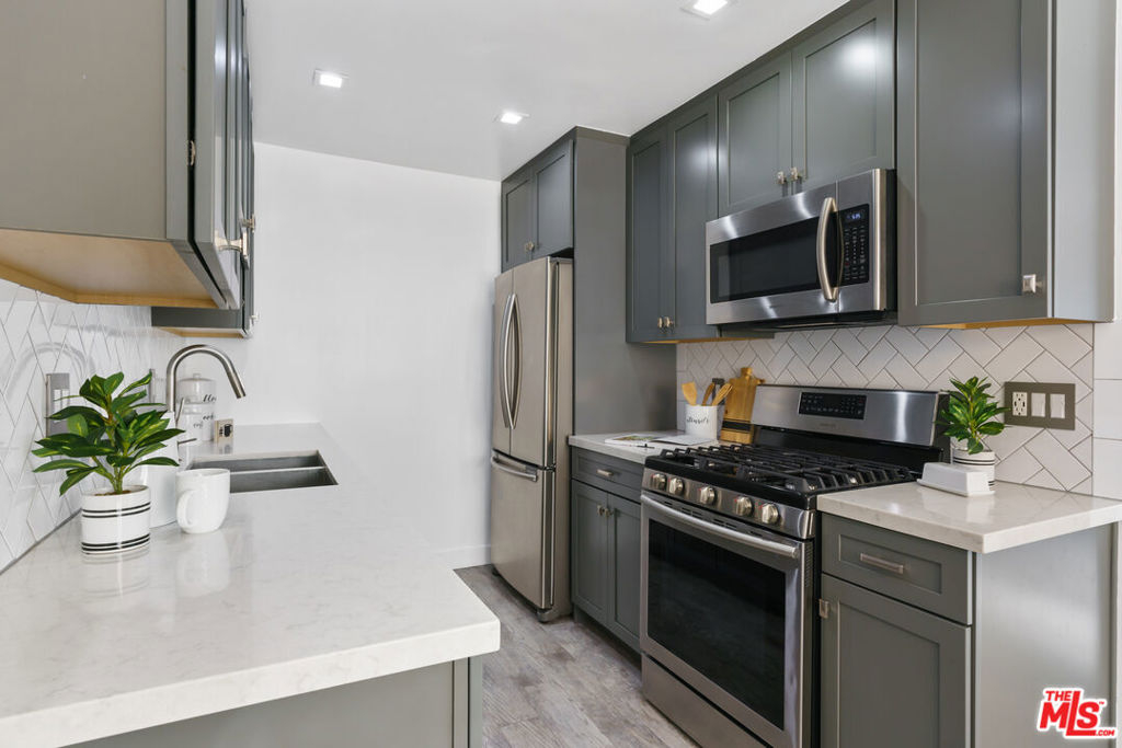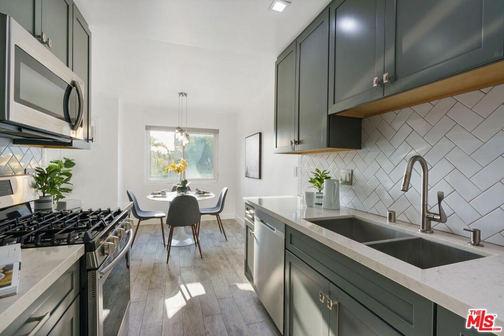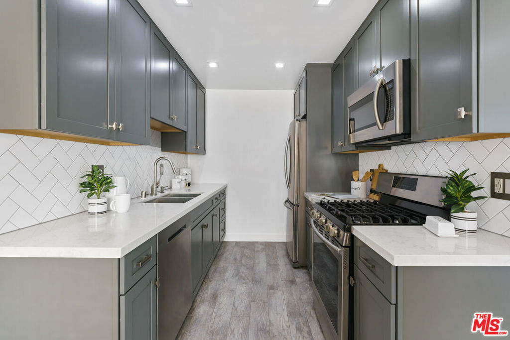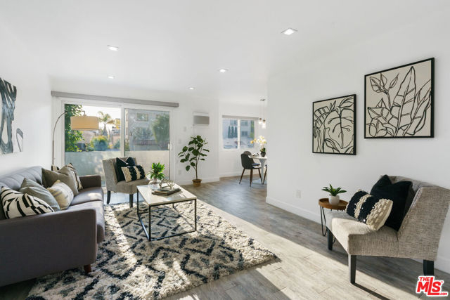 Bright, tree lined west-facing, fully remodeled 1 bedroom condo in prime West LA! Spacious living room with sliding doors leading out to a large balcony perfect for watching CA sunsets. Dining room off of the kitchen offers a great space for entertaining. Completely updated modern kitchen features gorgeous quartz countertops, new cabinets, beautiful white tiles, and all stainless steel appliances. Large bedroom with plenty of room for a king sized bed offers a big walk-in closet. Hallway bathroom newly updated as well, with custom tile and stylish new vanity. Unit also features laminate flooring, recessed lighting throughout, A/C in the living room, and ample built-in storage in the hallway. Unit comes with 2 tandem parking spots! Building is well managed, newly painted, gated and secured and features low HOA dues with a workout room, sauna, hot tub, common laundry room, bike storage and new security cameras throughout. Close proximity to Santa Monica, Brentwood, and the 405. Fantastic westside location you won't want to miss!