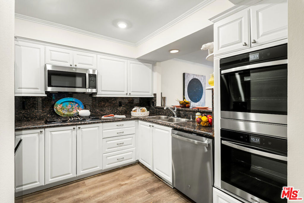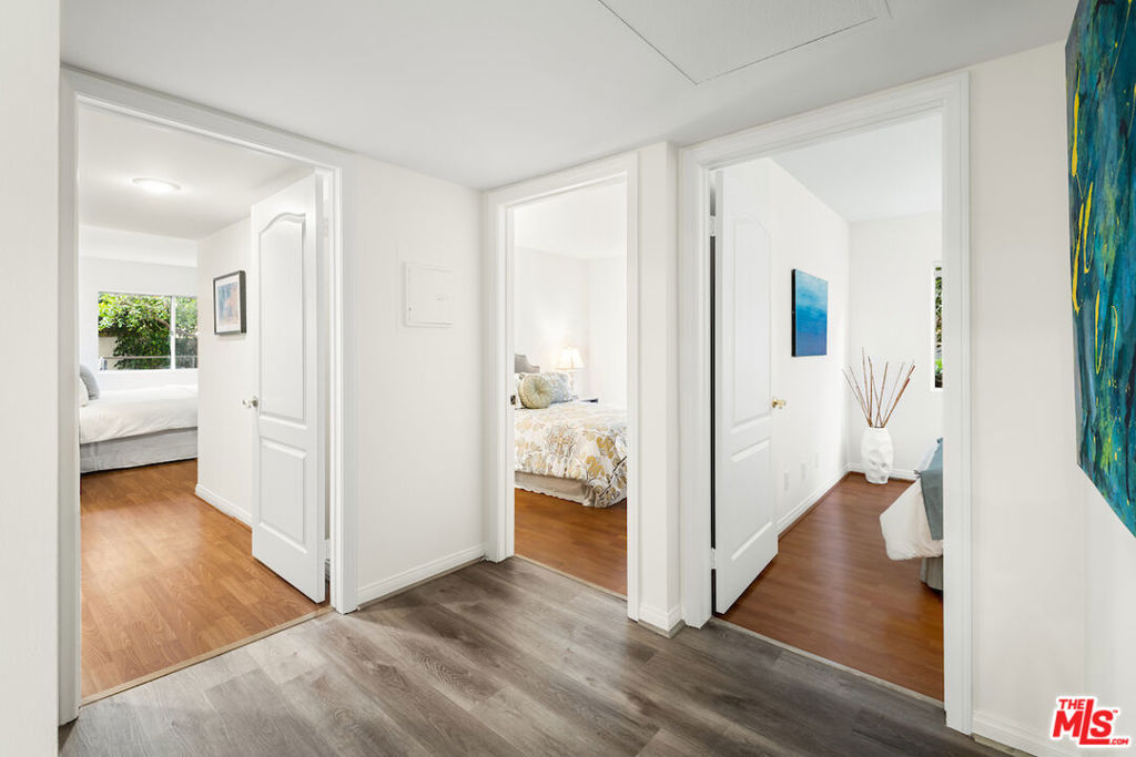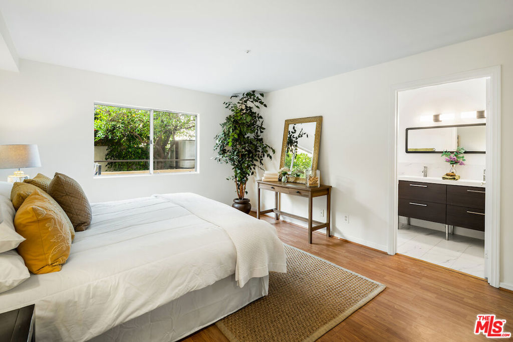 Amazing Brentwood Adjacent Condo with Expansive Private Patio. Secluded 3 Bedroom + 3 Bath unit with apprx. 1400 sqft. This single level unit is located in a quite rear location w/only one common wall. The Federal Plaza was built in 1991only a stone's throw away from Brentwood. Extremely spacious private patio, complete with mature fruit trees and tasteful vinyl flooring flows throughout the condo. Enjoy the feeling of openness and ample space in the living room. Granite fireplace in the living area provides a cozy ambience. The kitchen equipped with brand-new stainless steel appliances and granite counter tops, Lots of cupboard space and breakfast bar. Central heat and ac, Inside laundry and recessed lights. Abundant greenery views in all rooms ensuring privacy in all rooms, Generous size secondary bedrooms with sitting area, Tastefully remodeled bathrooms with modern. finishes. Expansive en-suite primary bedroom with ample closet space. Luxurious primary bath with separate spa tub, walk-in shower and dual vanities. This condo complex features a warm and inviting lobby, enhanced by lush greenery. Amenities include a 2 car secured parking plus lots of guest spots. Enjoy the vibrant Sawtelle Blvd scene, just moments away. Close to UCLA, Santa Monica, Century City and Beverly Hills