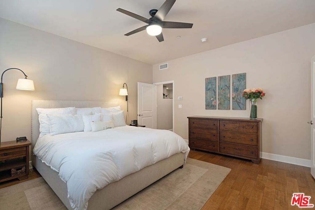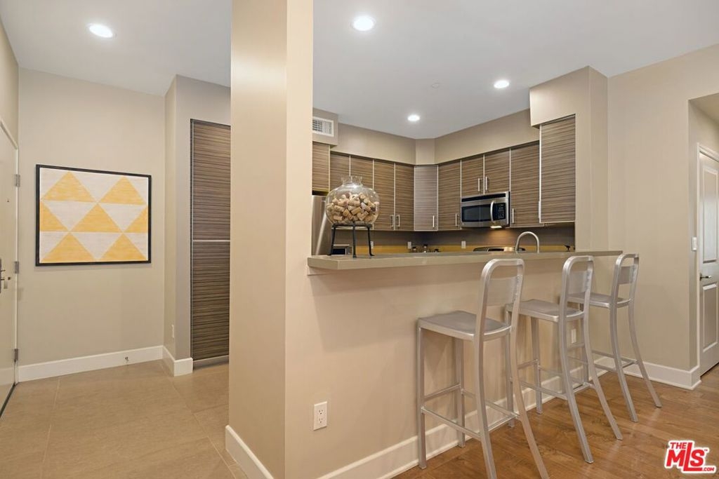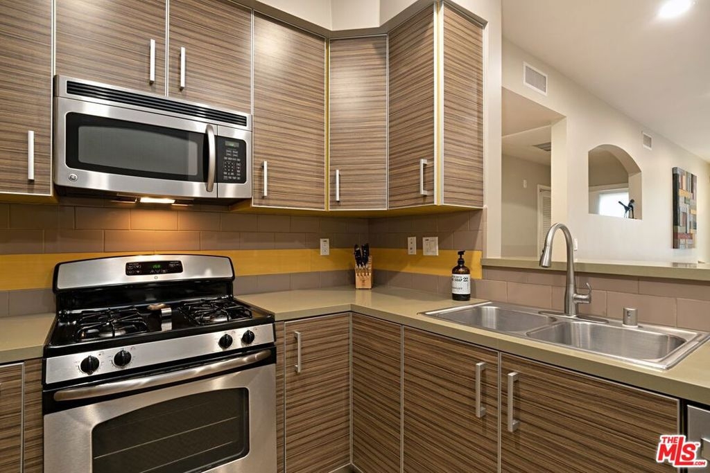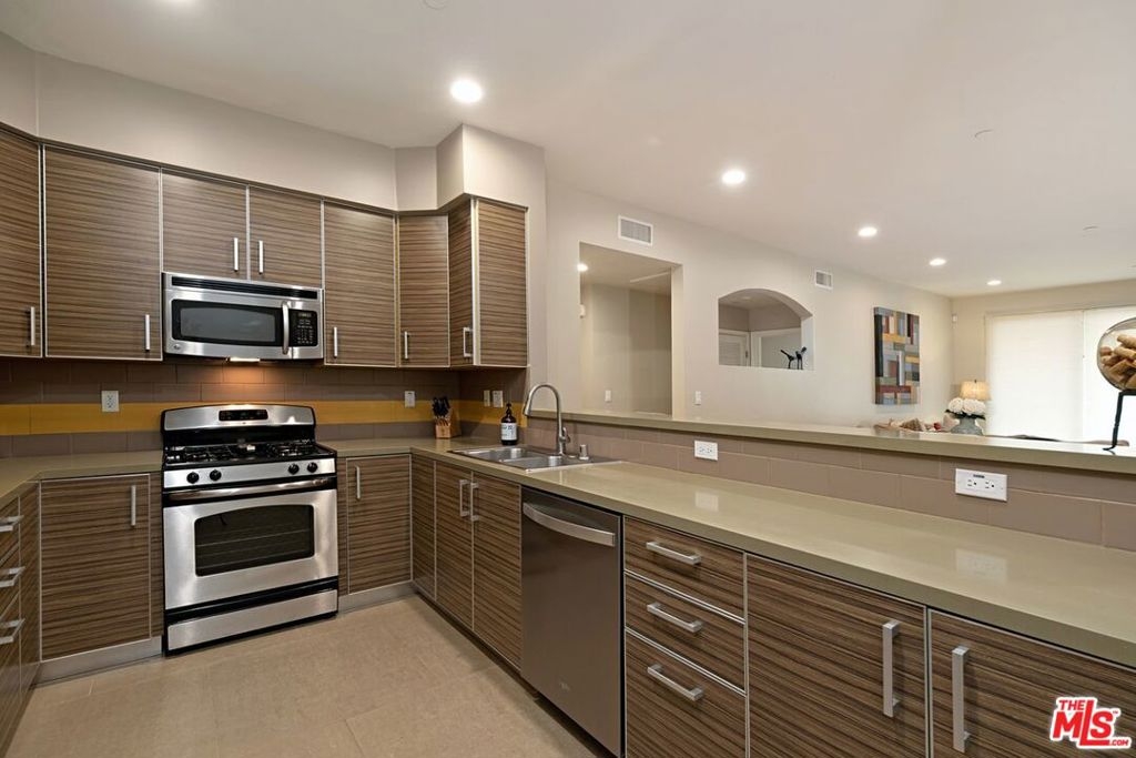Immaculate light and bright, move-in condition condo, built in 2009, with 3Br+3Ba. "High-end" contemporary kitchen with stainless steel appliances and Caesarstone counters. Living room with high ceiling, engineered hardwood floors and access to a usable balcony. Master suite is generously sized and features an en-suite bathroom with a large soaking tub. In Unit washer and dryer and 2 assigned parking spaces. The complex features a controlled access door, an elevator, a rooftop deck (with views) earthquake insurance and low HOA dues.