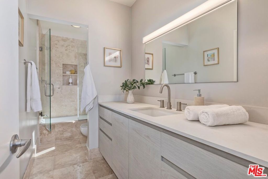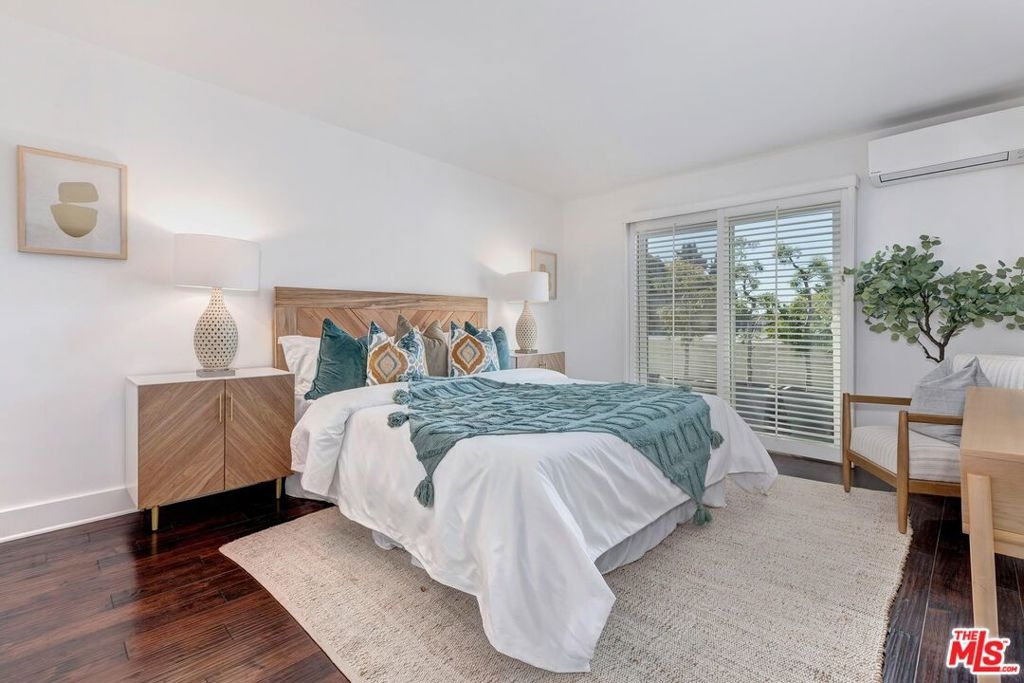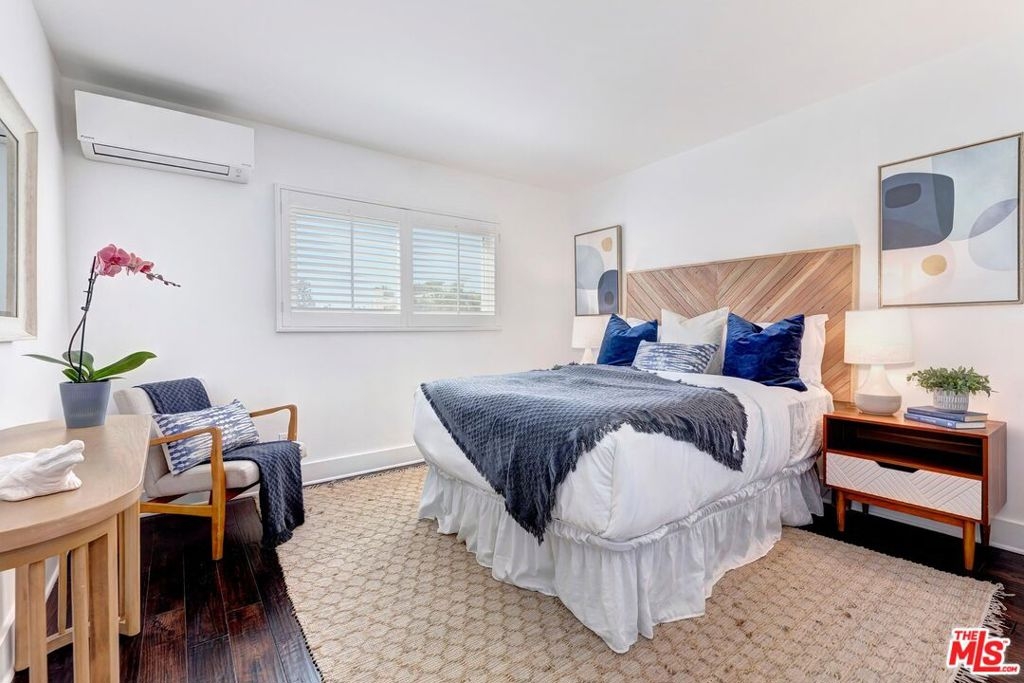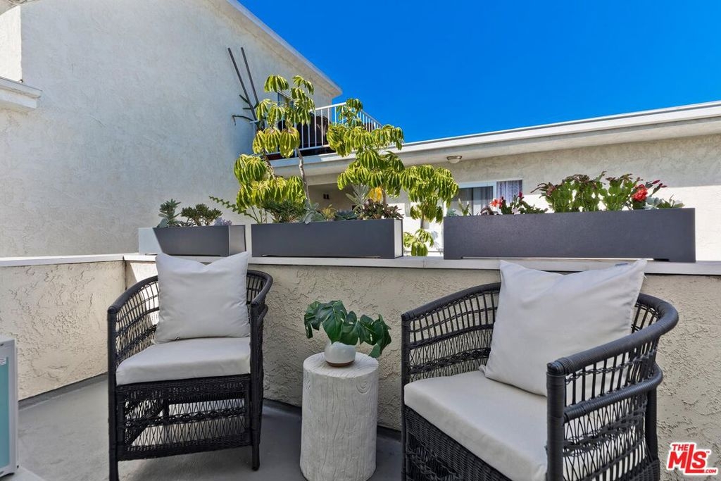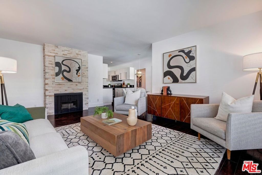 Beautiful two bedroom two bath condo in the sought after West L.A. neighborhood on a quiet tree lined street conveniently located near Santa Monica, St. Johns Hospital, Brentwood, UCLA, trendy Sawtelle dining and shopping. This spacious top floor light and bright unit features a wonderful floor plan with hardwood floors throughout, kitchen with newer stainless appliances, a lovely living and dining area with fireplace and a sunny balcony. The primary suite includes a walk-in closet, a second balcony and a tastefully redone bathroom. An in-unit washer/dryer, newer split units, an updated second full bath and ample storage completes this sophisticated home.