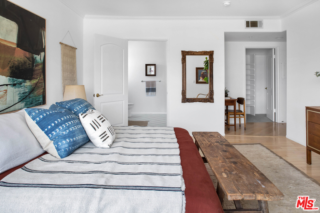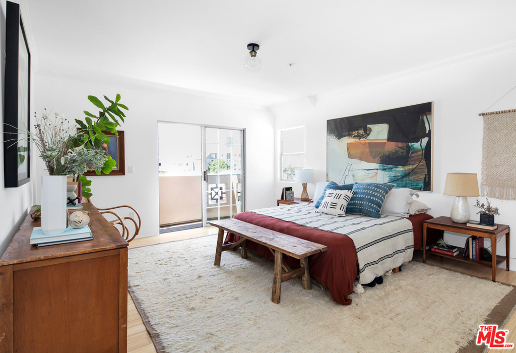 Welcome home to this fabulous corner Penthouse ideally situated between Santa Monica and Beverly Hills! Beyond the private courtyard, with its babbling water fountain and lush greenery, you'll find yourself at the formal foyer of this top floor unit. The open-concept living/dining room is bathed in natural light and the tremendous city views from the large balcony are perfect for enjoying your morning coffee or an evening glass of wine. The newly refinished light hardwood floors exude a cool, California sophistication, while the kitchen offers an abundance of counter and storage space, stainless appliances, granite countertops, and breakfast bar. The expansive main bedroom features a sizable walk-in closet, additional smaller closet, private balcony, and large ensuite bath with dual sinks, glass shower, and deep soaking tub. Another lovely guest bedroom and bathroom round out the magnificent floor plan. Private side-by-side laundry and utility closet provides excellent additional storage space. Two tandem parking spots with adjacent power outlet for an EV charger and additional storage cabinets in the gated garage. Mere minutes to Stoner Park, all the shops and restaurants on Santa Monica Blvd and Sawtelle, several award-winning schools, and easy access to both the 10 and 405 freeways. This one is not to be missed!
