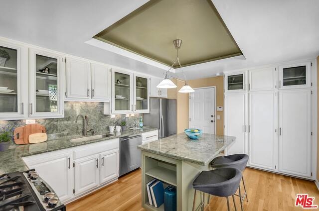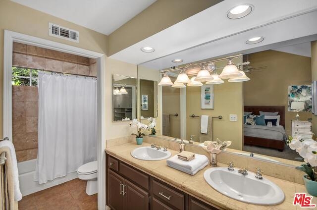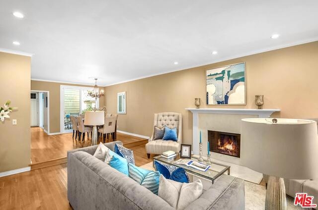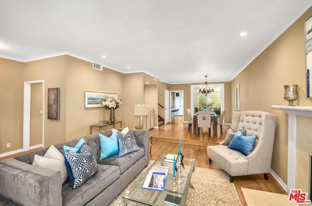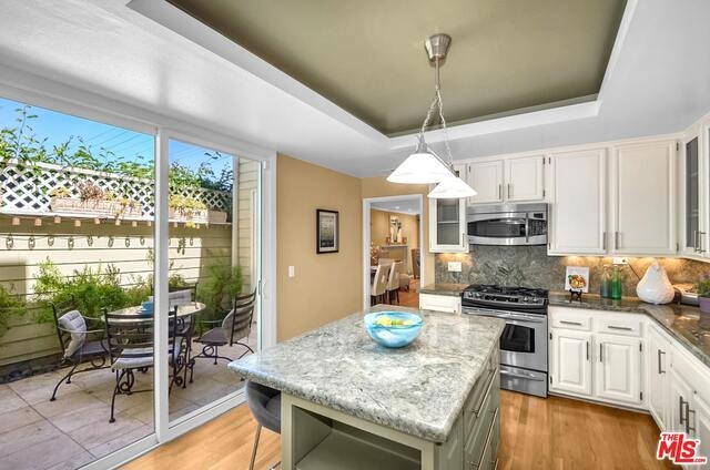 Gorgeous 3 BR, 2.5 BA townhouse with direct garage access. This end unit in small HOA feels like a house. Front private patio off living room and 2nd private patio with access from both dining room and kitchen. This unit has it all! A true entertainers delight. Hardwood floors through out, high smooth ceilings, recessed lights, fireplace in living room. Upgraded kitchen with granite counters, center island with pull out drawers, stainless steel appliances. Kitchen opens to patio for outdoor dining and dining room also opens to 2nd private patio. Enter kitchen from private 2 car garage. Skylight in staircase opens to alcove/den/media area. Spacious master en-suite; fireplace, balcony, dual sinks & walk-in closet. Upstairs additional 2 bedrooms, full bathroom and Separate Laundry Room SxS washer & dryer. So much to say about this lovely home. HVAC, EQ insurance, walk to Trader Joes, Ralphs grocery, Bundy Metro stop. Wow, nearby park with pool, tennis courts & so much more.