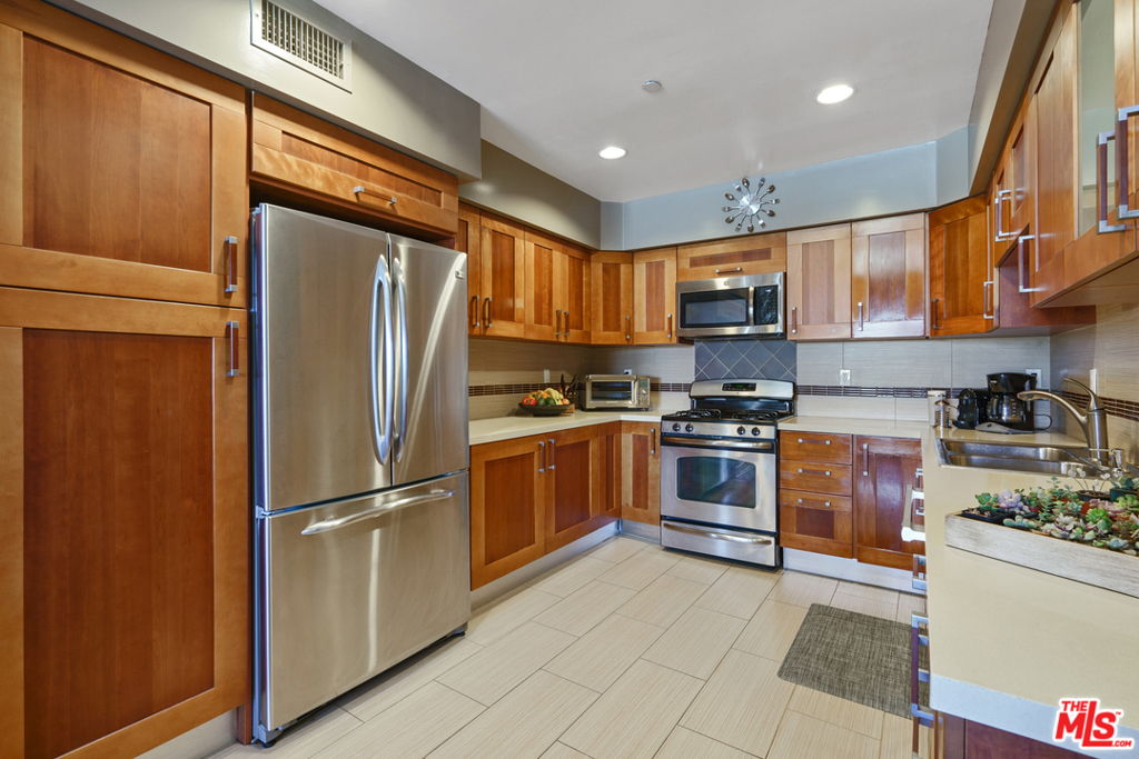 Stunning & sophisticated condo living youve been waiting for! Fantastic 3bd/3bth corner penthouse shows 14 ceilings, open floorplan w/ ample living space & natural light. Chefs kitchen includes SS appliances, shaker-style cabinetry, modern backsplash & Caesarstone counters. Generous dining area & spacious living room show rich wood floors, cozy fireplace & dual paned sliding doors w/ incredible city views. Sunlit balcony near living room is perfect for morning coffee. Unit also has new carpet, central heat/AC, recessed lighting, washer/dryer & is wired for security/media. Master suite shows walk-in closet & lavish bath w/ dual vanity. Guest bedrooms are separate from the master for ideal privacy. 1 offers en-suite bath, walk-in closet & wrap-around balcony. Modern complex offers secured entry, gated parking, guest parking, low HOA dues, EV charging, & furnished communal rooftop deck w/ city views. Close to restaurants, shops, parks, beach, farmers market & Expo Line for access to the entire Westside.