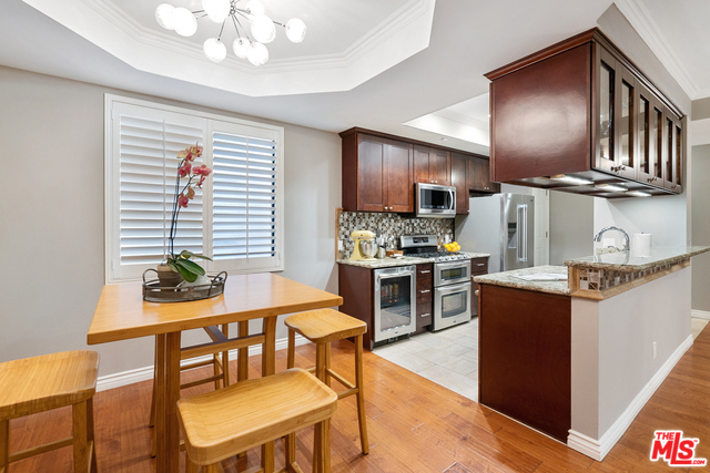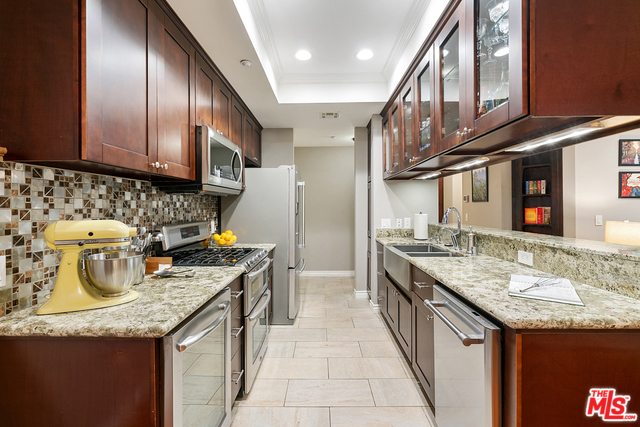 Stunning & sophisticated 2 bd/2 bth condo has been updated to the nines! Unit shows single-level open floorplan w/ rooms & baths at each end for ideal privacy. Tastefully designed finishes start w/ cook's kitchen w/ granite counters, high-end SS appliances, custom cabinets & lots of counter space. Kitchen opens to large dining area w/ recessed ceiling. Large living room has gas frplce w/ chic tiled mantel, leading to your private patio. Unit displays oak floors, recessed lighting, central heat/AC, stacked washer/dryer & crown molding. En suite Master bedroom shows large closets, updated bath w/ custom-tiled shower, spa tub & designer fixtures. Guest large bedroom has an updated bath across the way. Park Purdue is set just South of Pico. Unit incl. 2 parking spaces in gated garage, ample guest parking, communal rooftop deck w/ relaxing spa, Zen garden & extensive views. Located near Sawtelle shops & restaurants, farmer's market, parks, beach & Expo Line for easy access to the Westside.