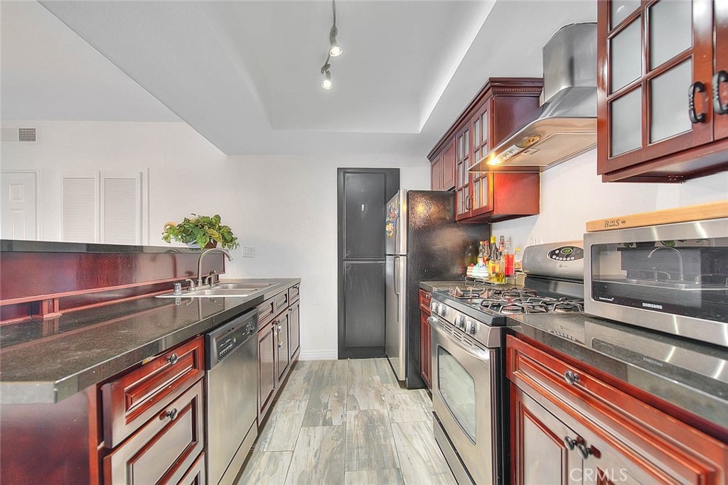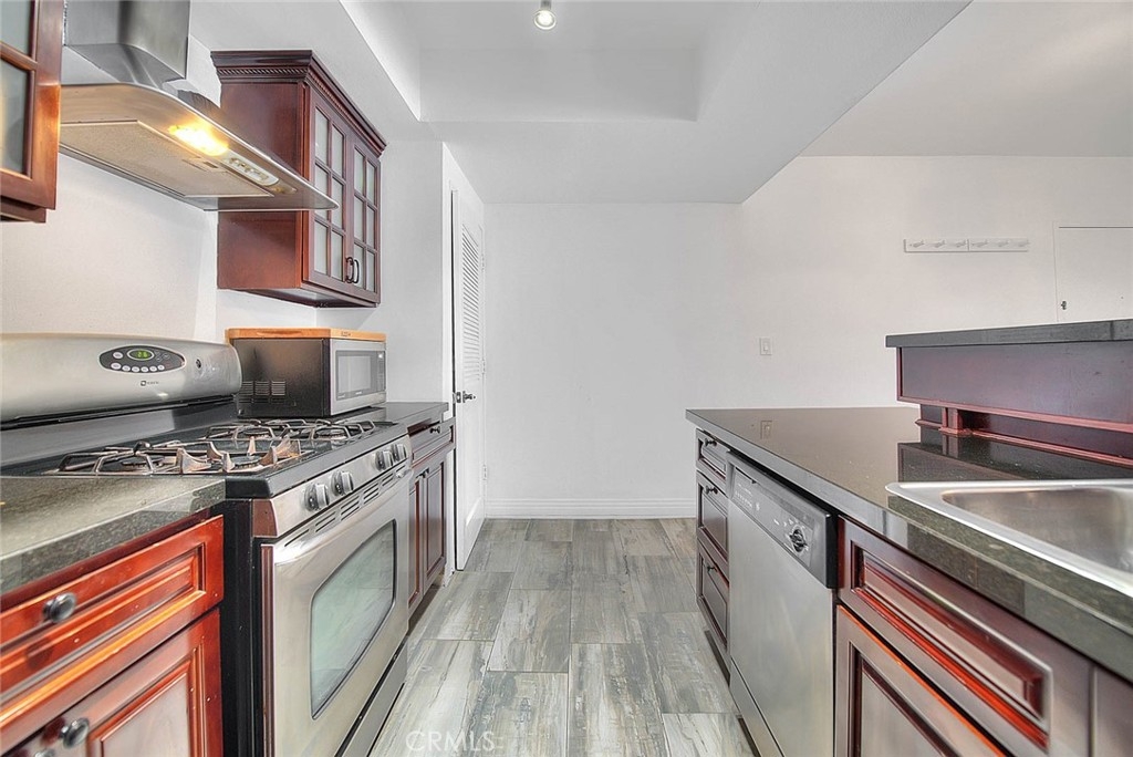 Brentwood Adjacent is also one of the nicest on the market. This is a true value and a score. This 2 bedroom and 2 bathrooms open floor plan condo dazzles with a sophisticated modern chic design that will make you content for years to come. The custom stucco fireplace is a high-end touch you will surely enjoy as both a heat source and design element. The two bathrooms with newer floating grey vanities on-top of newer laid white tile floors. The kitchen has granite countertop and mahogany cabinets. The small 8-unit low rise building offers low, stable HOA fees and includes amenities such as a large sauna, exercise and rec room, two-car parking, and extra storage. Closed to UCLA and Santa Monica pier.