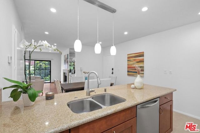 Move-in ready! Why rent when you can own this bright, remodeled 2 bed, 2 bath condo, ideally located near Brentwood, Sawtelle, Westwood, and UCLA. Redfin calls this area, walking paradise! This affordable unit features smooth ceilings with recessed lighting and stylish laminate/vinyl flooring throughout. The open-concept kitchen, dining, and living area is perfect for modern living, boasting a remodeled kitchen with granite countertops and custom cabinets. The master bedroom is spacious enough to accommodate a king-size bed and more! The ensuite master bath is elegantly updated with a double sink vanity and a stunning standing shower. The second bedroom is versatile, suitable for use as an additional bedroom or an office. The Regency Chateau Complex, professionally managed with only 8 units, offers individual storage rooms and tandem 2-car spaces in a secure, gated subterranean garage. Don't miss this comfortable and convenient living opportunity!