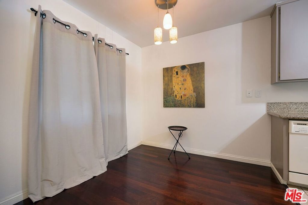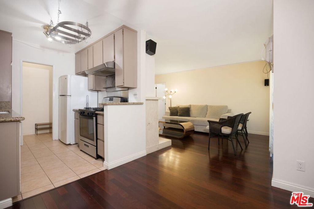 FALL IN LOVE with this Brentwood / Sawtelle adjacent 1 Bed / 1 Bath top floor unit with a private balcony. This stunning home boasts abundant natural light and hardwood floors throughout and an open kitchen/dining area that features granite countertops, a stainless steel range, and ample kitchen storage. Your living area opens up to a private balcony with beautiful views of the lush and well-maintained courtyard, ideal for outdoor dining and entertaining. Off the hallway, you will find a spacious bedroom complete with a generous walk-in closet. A recently updated bathroom with an oversized tub and additional hall closet finish off this beautiful unit. The building offers a secure garage with one parking space with DIRECT access into the building, an additional storage unit, and a large well-maintained laundry area. With a well-run HOA that covers water, immaculate common areas, and controlled, secure access to the building, you're move-in ready. Located in a quiet neighborhood, you'll enjoy the privacy and seclusion while still being blocks away from the shops, restaurants, beaches, and all that Westside has to offer. Three and a half miles from UCLA and the new Bundy Expo Station, you're moments from wherever you want to be. Furniture is for sale or can be negotiated with sale.