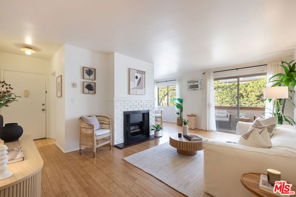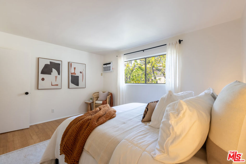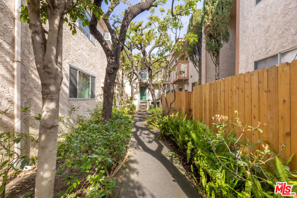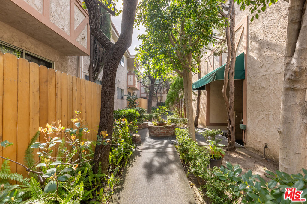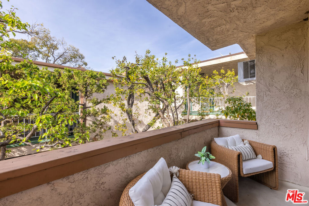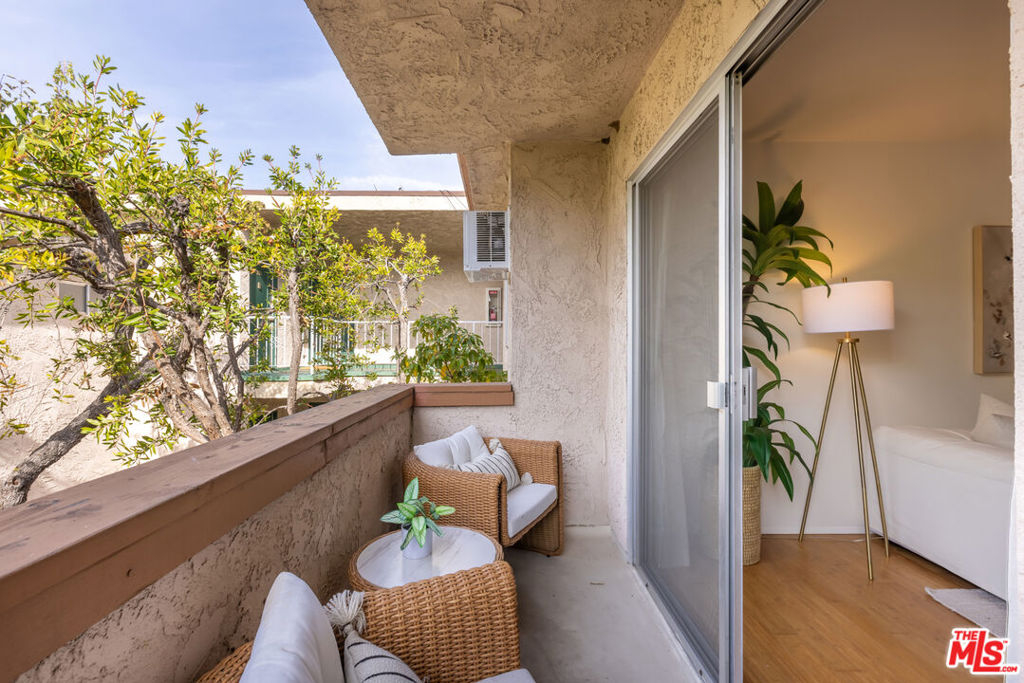 Welcome to this charming, pet-friendly top-floor condo, where a beautiful courtyard greets you at the entrance. Tucked away in a quiet rear location interior courtyard location, this bright and spacious unit offers the perfect blend of comfort and convenience. Step into a sunlit cozy living room, perfect for relaxing evenings. The primary bedroom boasts a generous walk-in closet, while the unit is equipped with A/C in both the main living area and bedroom for year-round comfort. Enjoy your morning coffee or unwind after a long day on the private balcony, overlooking a serene, tree-lined courtyard. Only one shared wall, gated parking (1-Car assigned) , and garage storage. Ideally situated with easy access to Santa Monica, Brentwood, UCLA, and Beverly Hills, this home offers the best of city living in a peaceful setting. Don't miss out on this fantastic opportunity!