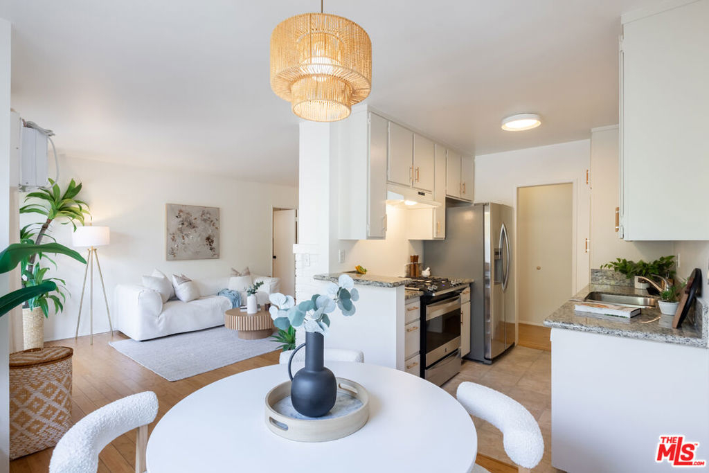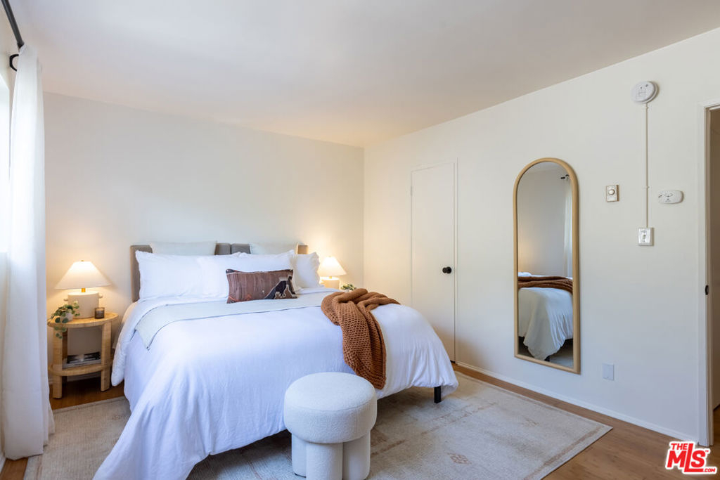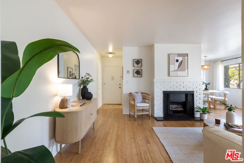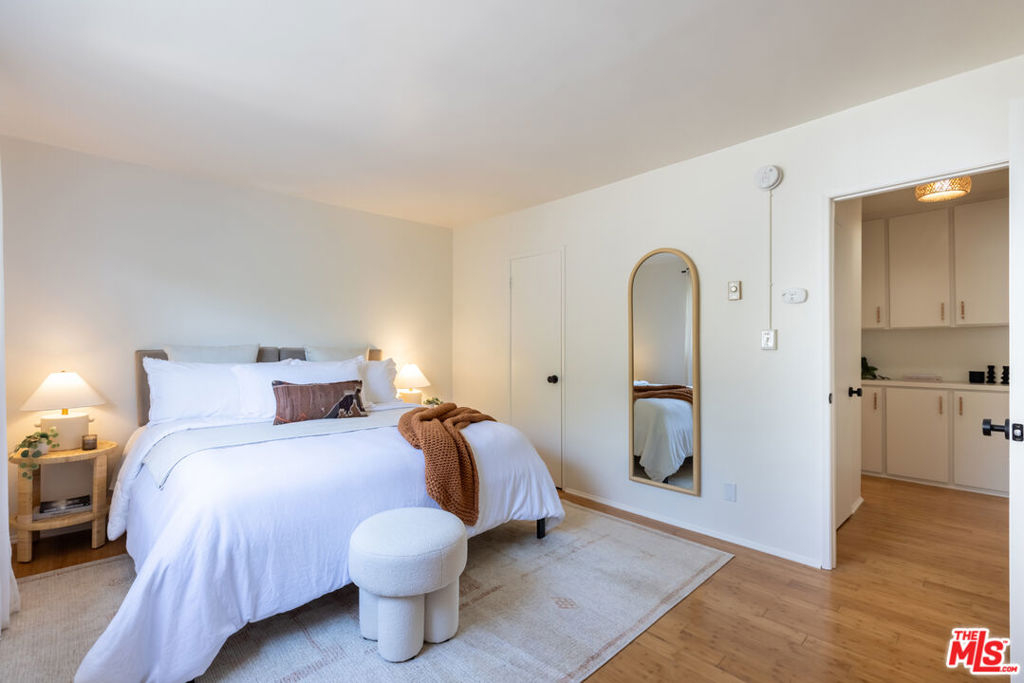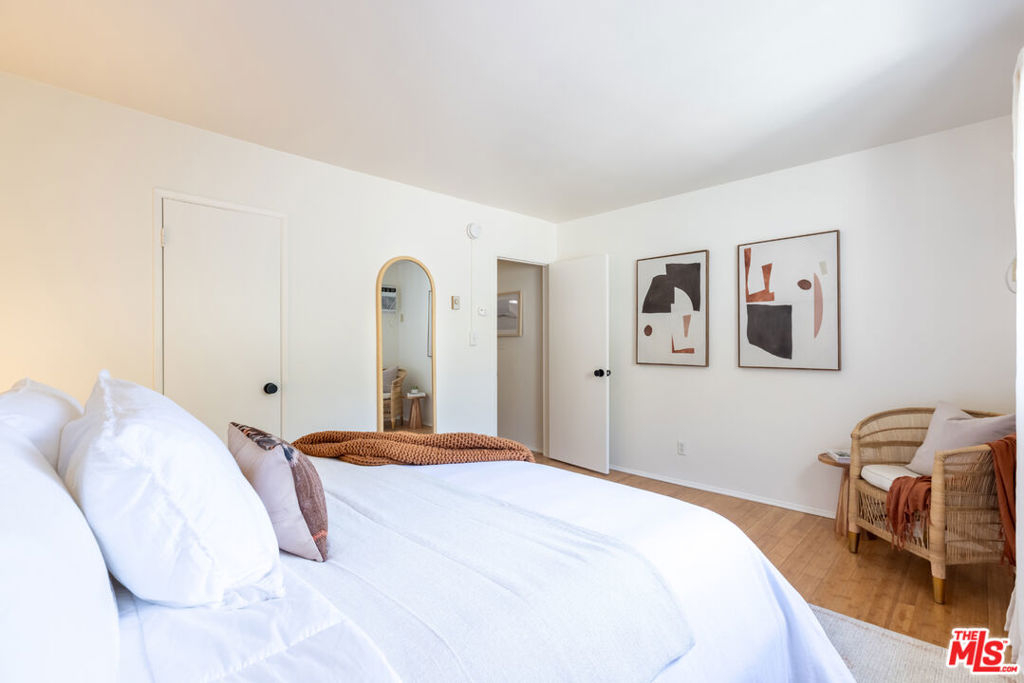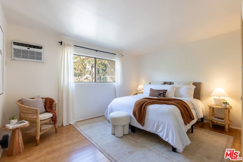 Welcome to this charming, pet-friendly top-floor condo, where a beautiful courtyard greets you at the entrance. Tucked away in a quiet rear location interior courtyard location, this bright and spacious unit offers the perfect blend of comfort and convenience. Step into a sunlit cozy living room, perfect for relaxing evenings. The primary bedroom boasts a generous walk-in closet, while the unit is equipped with A/C in both the main living area and bedroom for year-round comfort. Enjoy your morning coffee or unwind after a long day on the private balcony, overlooking a serene, tree-lined courtyard. Only one shared wall, gated parking (1-Car assigned) , and garage storage. Ideally situated with easy access to Santa Monica, Brentwood, UCLA, and Beverly Hills, this home offers the best of city living in a peaceful setting. Don't miss out on this fantastic opportunity!