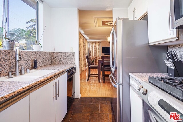 Welcome Home! In the heart of West LA, you will find this contemporary 2 bedroom, 2 bathroom well maintained, condo on the elevated first floor. The entry opens up to a large living room and dining open-concept. The living room is cozy with a gas fireplace and plenty of natural light from the long front balcony. The bright kitchen includes stainless steel appliances, picture window, and an in-closet laundry room. The spacious master suite includes a master bathroom with a private shower and organized walk-in closet. The second bedroom is great for a guest bedroom or office that includes mirrored closets. There is a second bathroom in the hallway, two tandem parking spaces in a gated subterranean garage, and a security system for the unit. This gem won't last long in this very desirable neighborhood centrally located on the Westside! The only thing missing is You!