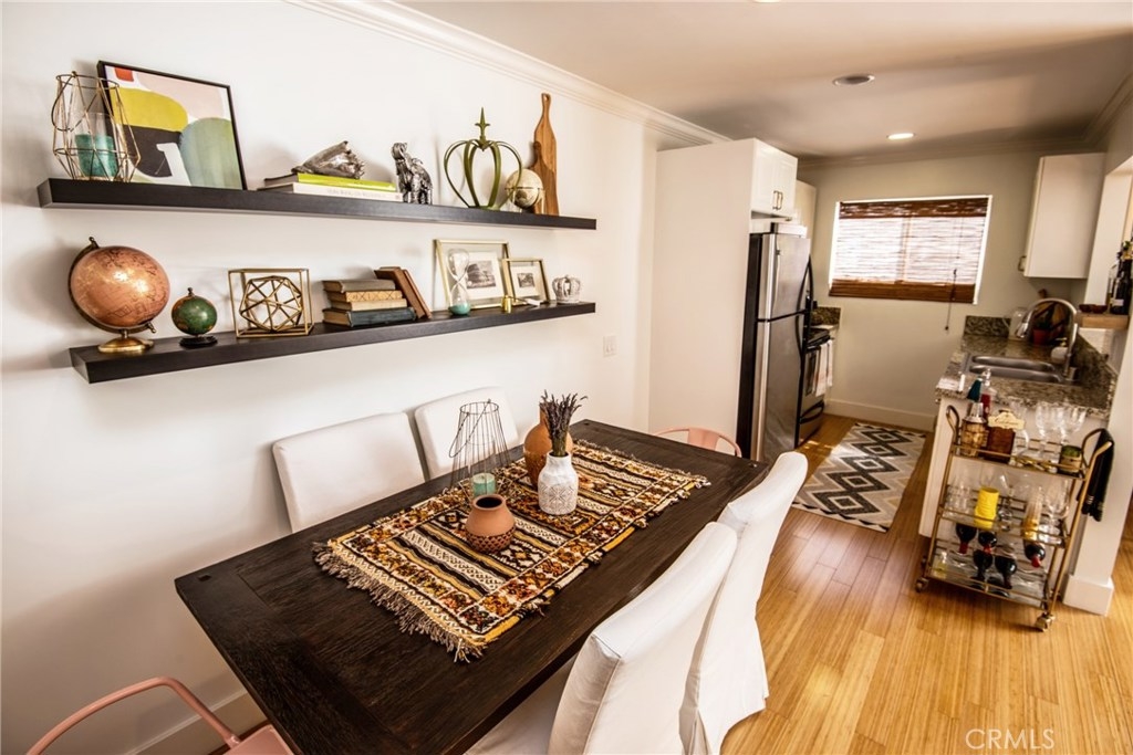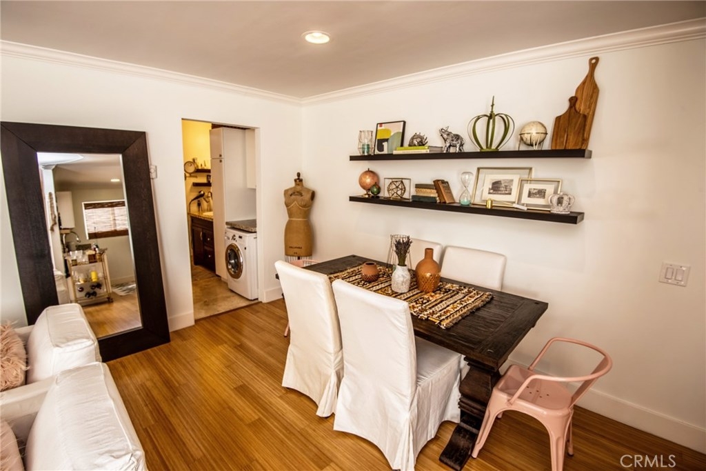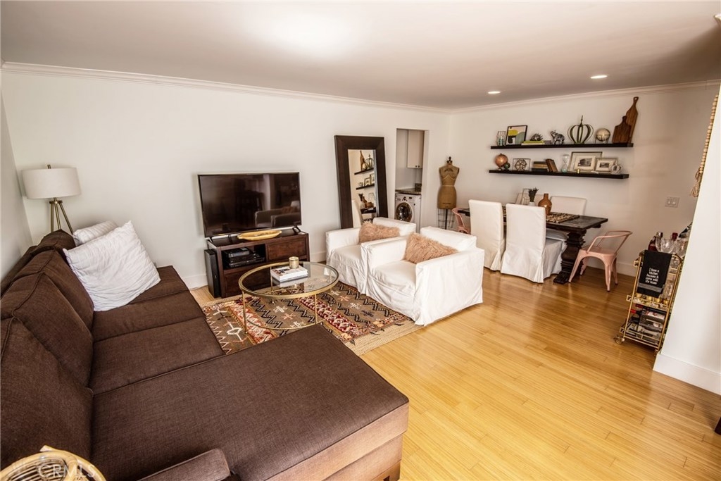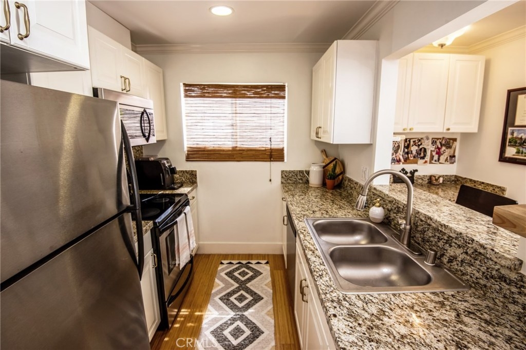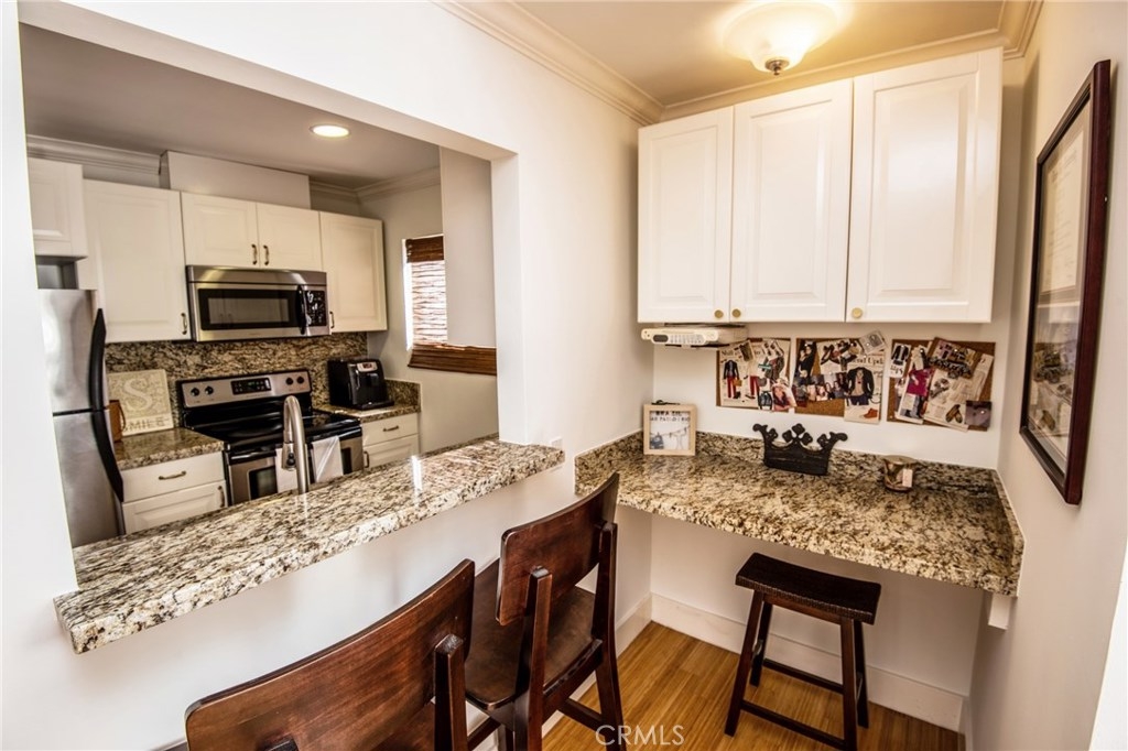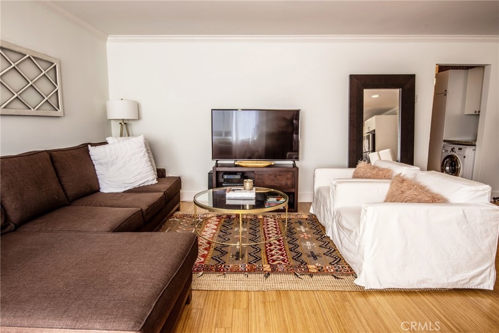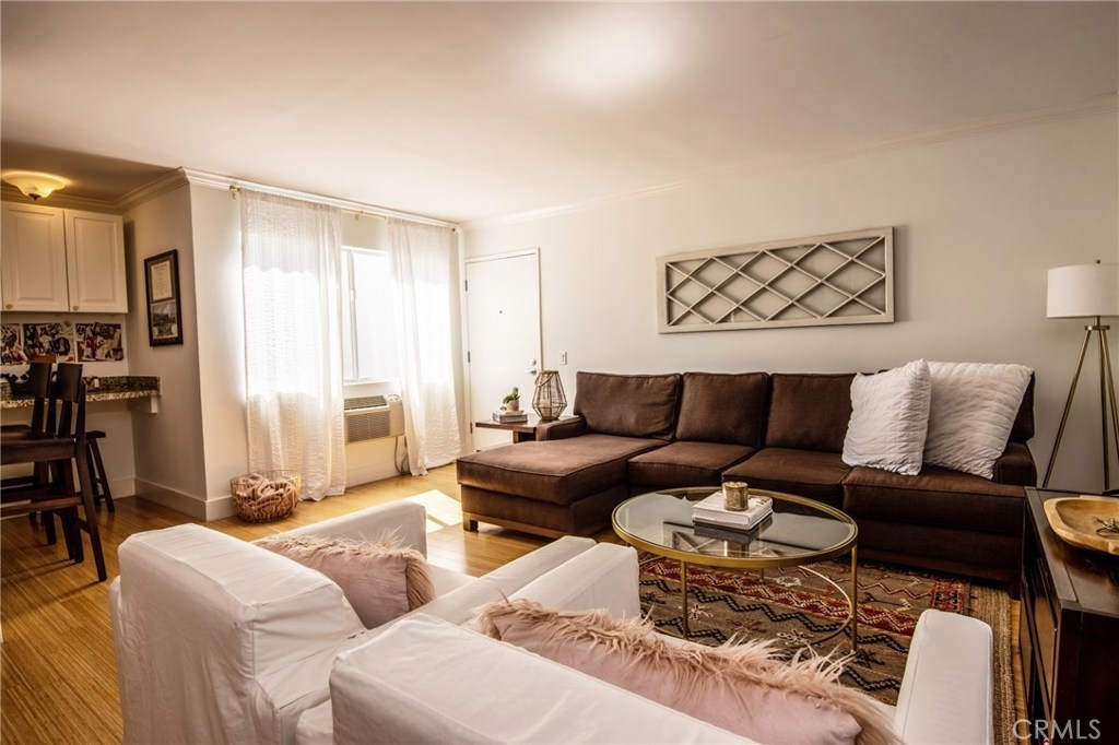 Come see this gorgeous 1 bedroom 1 bath condo located in the heart of Los Angeles. Walk in and experience, beautiful bamboo wood flooring, neutral paint, built ins, crown molding, modern large base moldings and tons of natural light. You will love the remodeled kitchen with white cabinetry, granite counters and stainless steel appliances. The built in desk area is super convenient and is highlighted by a granite top. The Master bedroom is quite spacious and has ample closet space. The bathroom has also been remodeled with granite counter tops, newer vanity and a shower/tub combo. Don't miss the washer/dryer combo tucked perfectly in the built in laundry area. This building offers 2 spot tandem gated parking, security cameras surrounding the premises, laundry facilities and a banquet/recreation room. Building FHA/VA approved and is close to all the "hot spots" in Los Angeles! Close to shopping, trendy restaurants, beaches and public transportation.