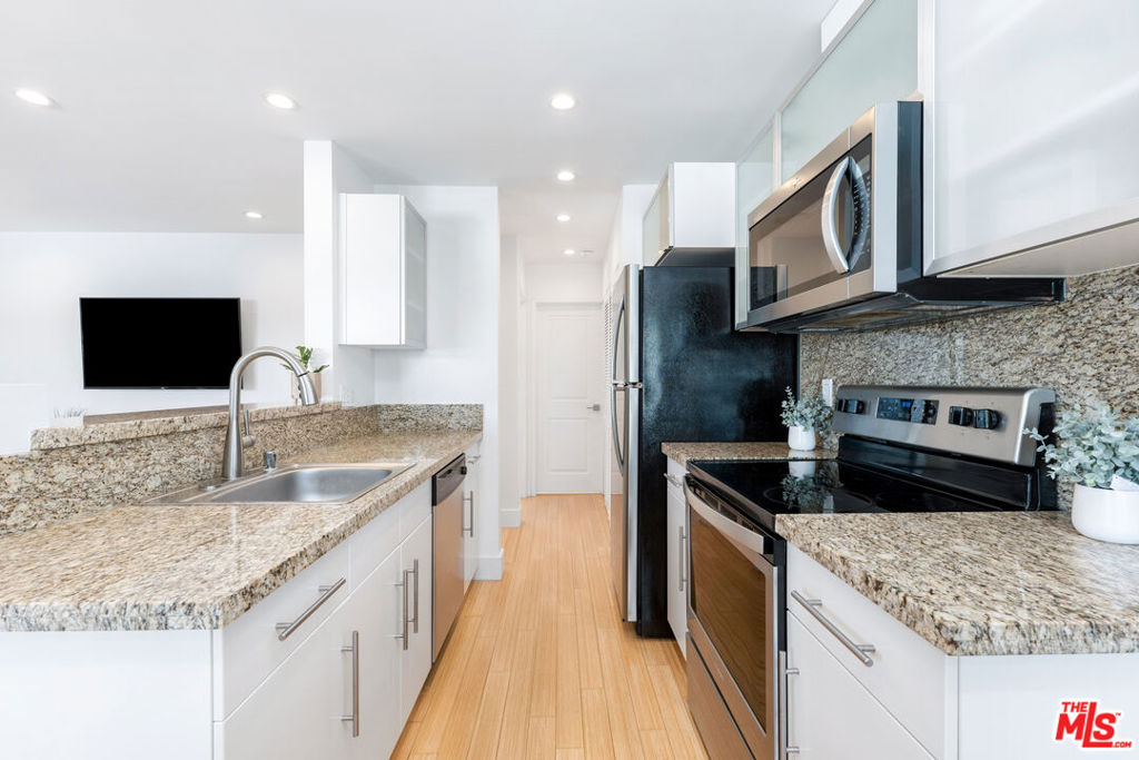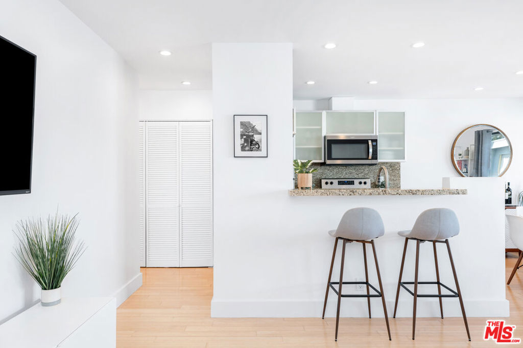 Exceptionally Stylish Sawtelle Condo! Conveniently nestled in a desirable pet-friendly community, this recently remodeled 1 Bed / 1 Bath property impresses with an open contemporary floor plan, a crisp color scheme, beautiful bamboo flooring, abundant natural light, and a spacious living room boasting sliding glass doors leading to a private balcony. Ideally fashioned for easy entertaining, the incredible open concept kitchen features stainless-steel appliances, granite counters, a breakfast bar, white and frosted glass faced cabinetry, electric range/oven, built-in microwave, dishwasher, recessed lighting, and a dining area. Restfully relax in the size-able primary bedroom with a mirrored closet and bask in the modern full bathroom with a shower/tub combo and a back-lit storage vanity. Other Notable Features: 2-Covered Gated Parking Spaces, In-Unit Laundry, Keypad Security Entrance, Electric A/C, Radiant Heat (Operational), Low HOA Fees, Convenient access to public transit, UCLA, Shopping and Dining on Sawtelle, the 10 & 405 FWYs, the upcoming Google HQ at One Westside, and much more!