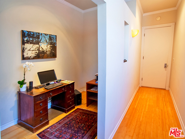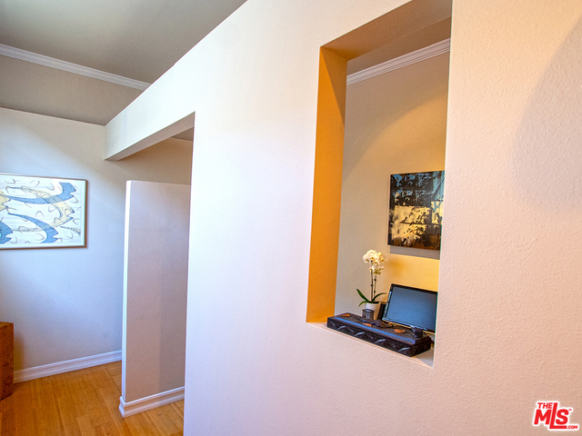 Stylish and spacious 2 bedroom + 2 bath + office end unit with beautiful bamboo floors throughout and high ceilings which give the unit an open, airy feel. Both bedrooms are good size, the master suite has a huge walk-in closet and the bathroom has a soaking tub. Floors in the kitchen and baths are updated, newer countertops in kitchen, step-down living room with rock fireplace. Good windows and great walls for art. The location is conveniently close to UCLA, Brentwood, Santa Monica, and Century City. There is an inside laundry. There is also central heat and a/c. This is a fantastic unit!