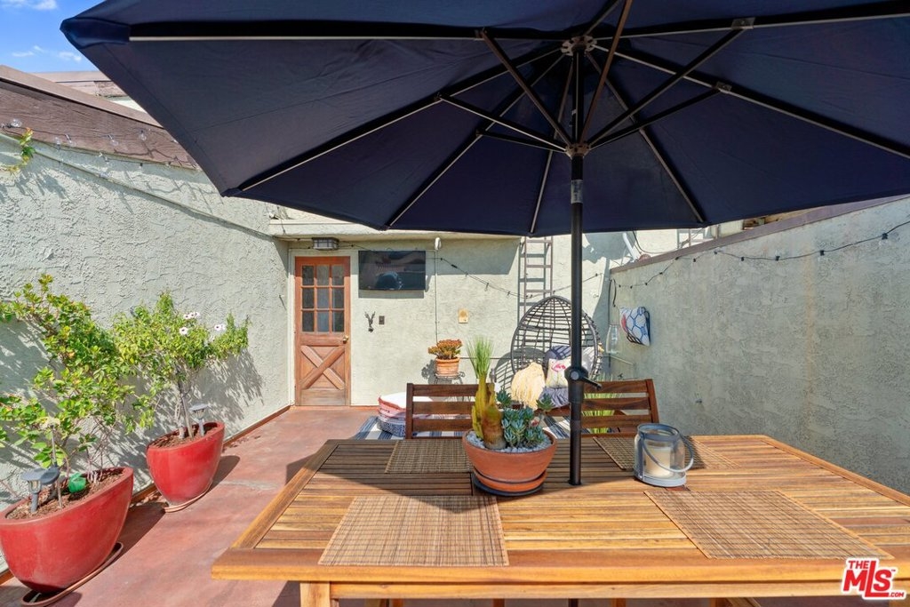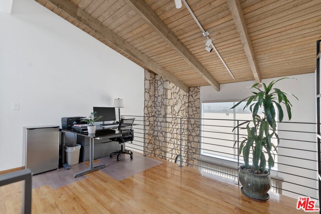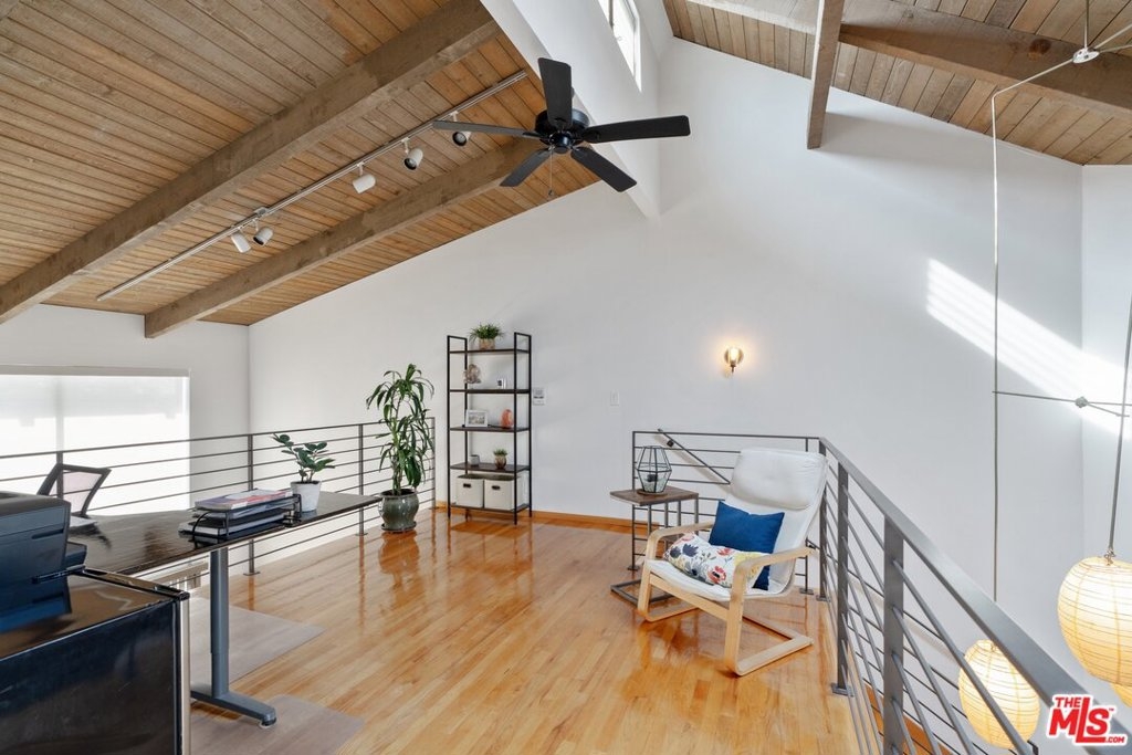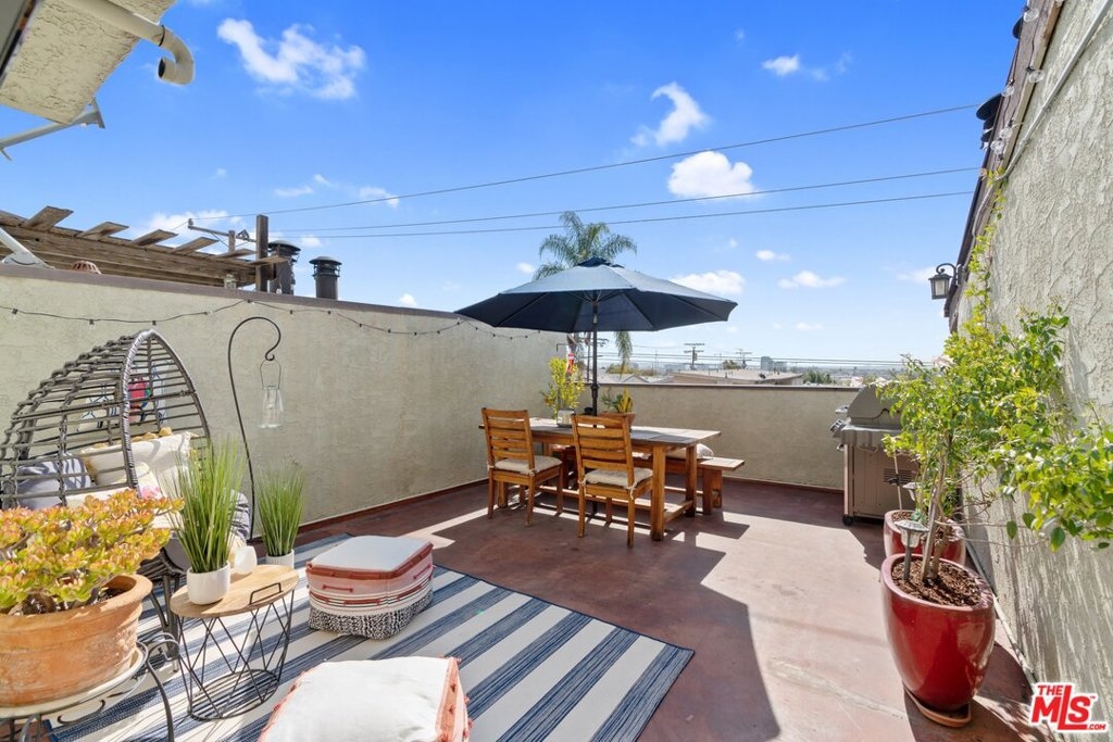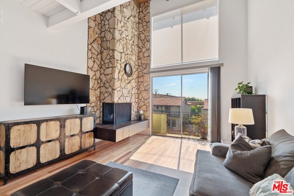 Enter into your personal slice of heaven. Upon entry, you'll notice the dramatic architectural details, from the 2-story windows and original 70's stone fireplace, to the post and beam ceilings, skylights and city views from your private rooftop deck - a sanctuary large enough to host your next dinner party, yet private enough to feel like a real reprieve from the city. This Penthouse unit features a primary suite with a walk-in closet, and a full bath with glass tiles, plus a delightful Japanese soaking tub. The updated kitchen has newer stainless steel appliances and open shelving. Gorgeous hardwood floors and a lofted sunken living room with oversized sliding glass doors to let that Ocean breeze in (only 15 mins to SM!). Take the floating staircase up to a gorgeous loft - perfect for WFH. Here, you'll find a second bedroom as well as a second bonus loft that is ready for your Peloton. This building is a walk-up with low HOAs, in-unit laundry, 2 car parking in a shared garage, and controlled access. The cherry on top? With a walk score of 87, and everything that Sawtelle's Japantown, Westwood Village, and Brentwood have to offer, you'll have plenty to keep you entertained in a space that will leave you feeling reinspired.