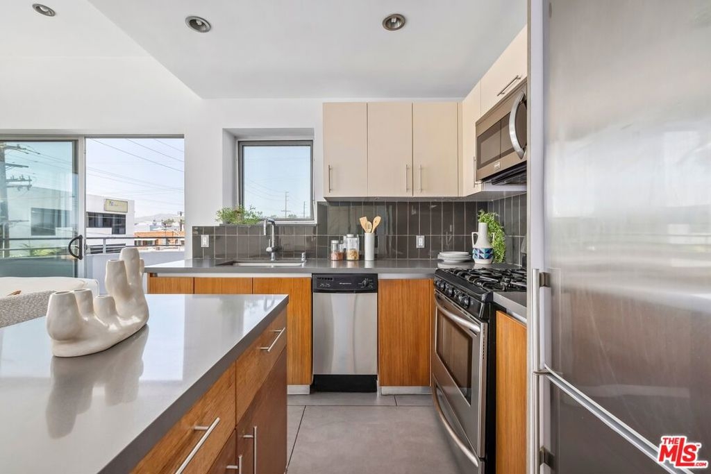 Located in one of Los Angeles' most vibrant and sought-after neighborhoods, Soho Square, this beautifully appointed 2-bedroom, 2-bathroom condo offers the perfect blend of modern comfort and urban convenience in Sawtelle's renowned Japanese district. Featuring a bright and spacious open floor plan that seamlessly connects the kitchen, dining, and living areas ideal for both relaxing and entertaining. The gourmet kitchen boasts custom cabinetry, sleek gray Caesarstone countertops, and energy-efficient stainless steel appliances. Natural light fills the home, enhancing the warm and inviting atmosphere. Additional features include an in-unit washer and dryer, and central air conditioning and heating. Enjoy the convenience of two parking spaces in the gated underground garage along with three beautifully landscaped courtyards with cozy fire pits, perfect for relaxing with family or hosting friends. Just steps from Sawtelle's iconic restaurants, shops, and local markets, and a short stroll to Santa Monica Blvd, this prime West LA location offers the best of city living.