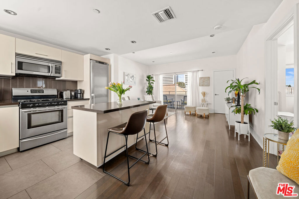 Perched atop one of West LA's most vibrant streets, this stunning penthouse offers the perfect blend of luxury living and urban convenience. Step inside to discover this airy and spacious 2bd/2ba retreat with high-end finishes, an in-unit washer/dryer, and a balcony with views of Westwood. Location, location, location. Roll out of bed and into LA's hottest culinary scene! Foodies rejoice as you take the 5-minute stroll to Tsujita LA, Chitchat Coffee + Matcha, Nijiya Market, B Sweet, Erba, and beautiful Hashimoto Nursery! Instant access to 405/10 freeways. A quick drive to Santa Monica, Downtown, LAX, and beyond. Dual (tandem) secured parking. Don't miss your chance to call this top-floor sanctuary home where elevated living meets convenience!