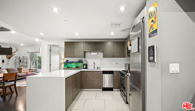 SOHO sophistication meets Sawtelle Japantown! Millennials, hipsters, techies, fashionistas & chic urban dwellers, will rejoice in this rare and remarkable corner unit in the designer done St. John's Wood. Bathed in natural light, the refined floor plan features a formal entry that opens to a smart state-of-the-art kitchen highlighted by European cabinetry, stainless appliances, and Caesarstone counters; an oversized living room is punctuated by large picture windows, ample wall space for art connoisseurs, and a big balcony perfect for evening soirees. Bedrooms on opposite ends provide exquisite privacy, while tasteful finishes abound in the modern baths. Gleaming gray Bamboo floors, in-unit washer/dryer, and central A/C and heat are sure to impress while, water, trash, gas, internet, public courtyard w/ fireplace, and EQ insurance are included HOA amenities. 2 side-by-side parking spaces and separate storage locker complete the picture. A treat for the buyer with discriminating taste!