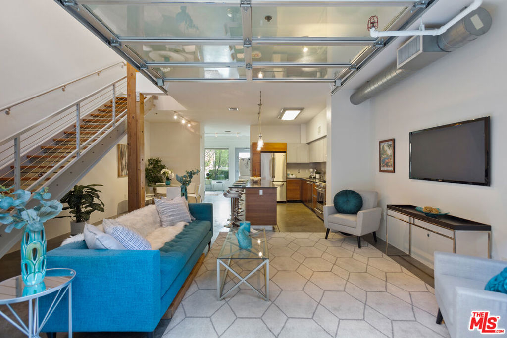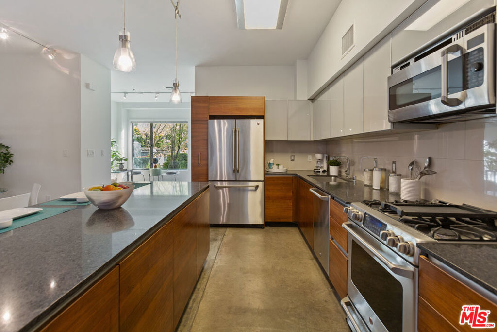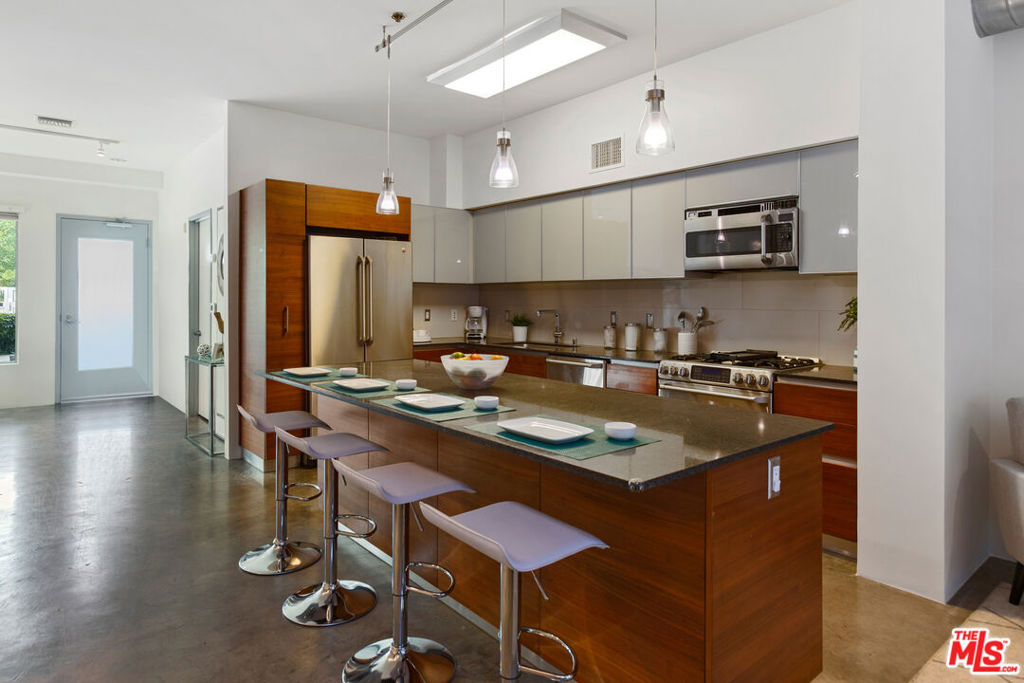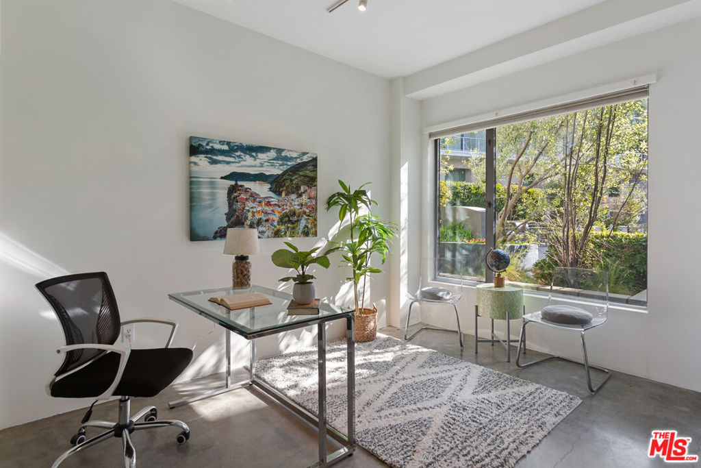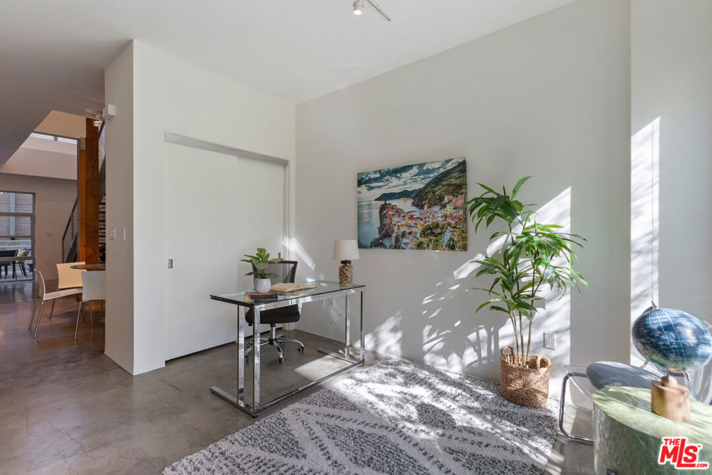 Gorgeous T-Lofts two-level 2bed/3 bath unit with 1,610sqft of indoor/outdoor living. The main level offers a bonus area with closet off of the entry that can be used as a 3rd bedroom or office space. Open concept kitchen with top quality contemporary design and finishes including GE Cafe stainless appliances, Italian cabinetry, a huge center island with ample seating. A tall glass roll up door opens up the living room space to create seamless access to a large outdoor private patio. The primary suite has an attached bathroom with tub/shower, double sink vanity, and walk in closet. 2nd bedroom has en suite bath. Wood floors upstairs. Gated access building, open courtyard, guest parking, fitness center, EV charging stations, and spa. In-unit laundry.