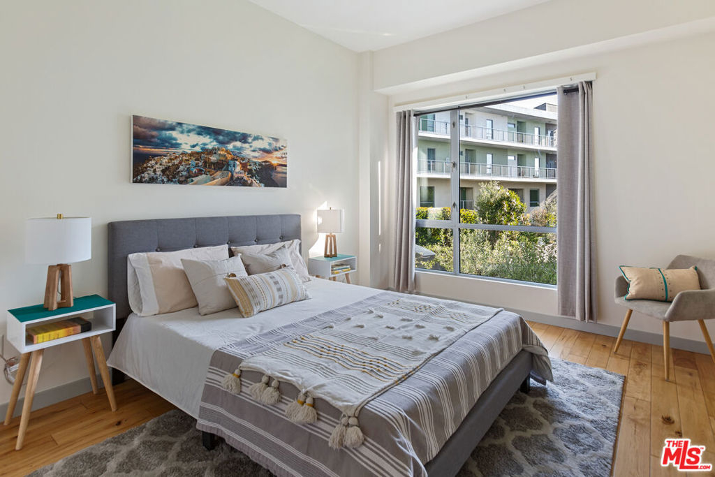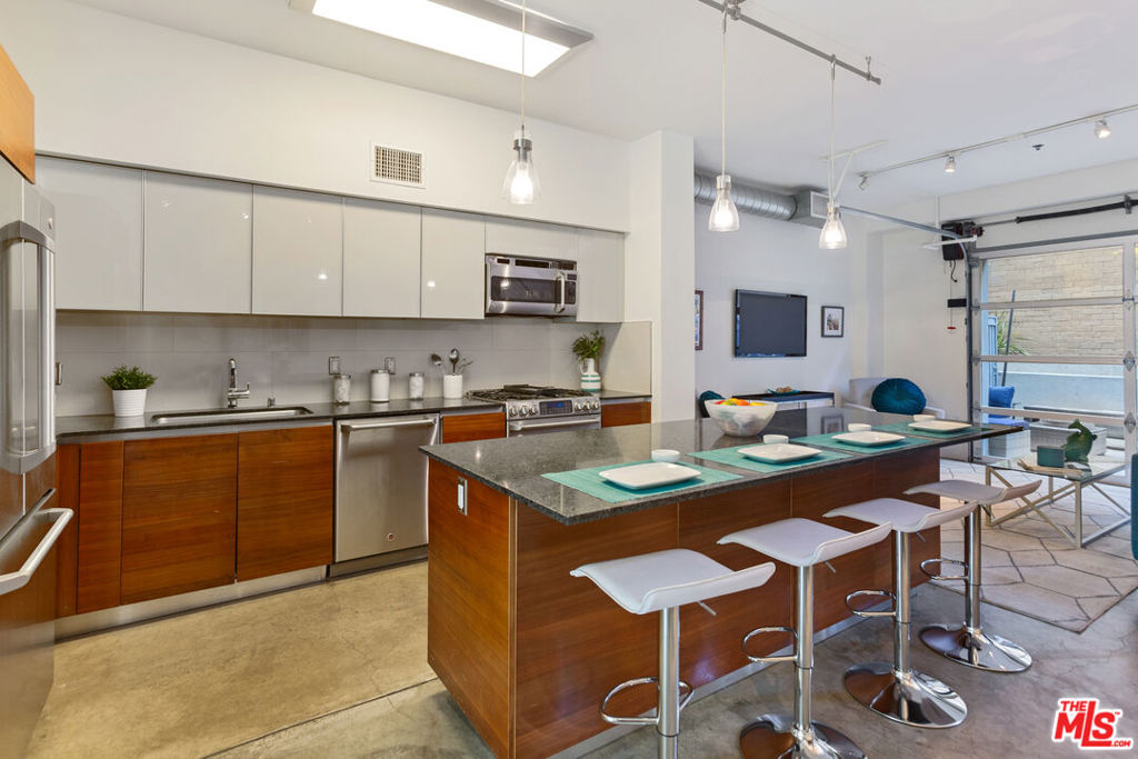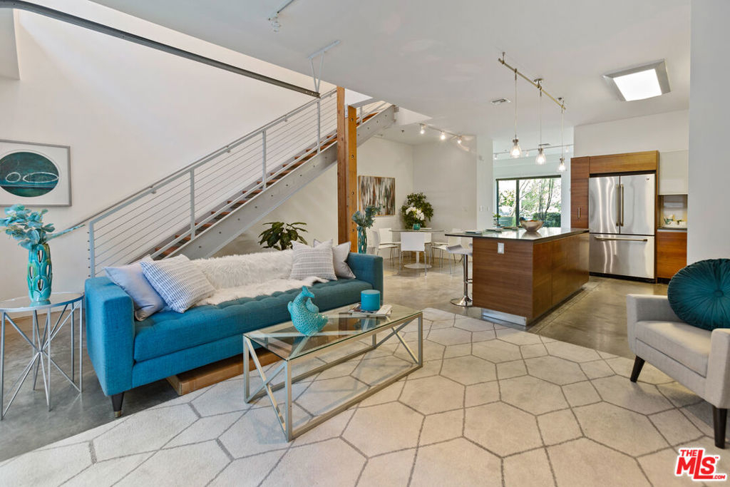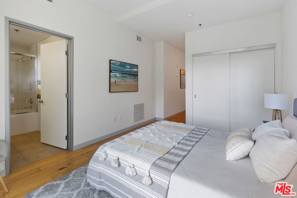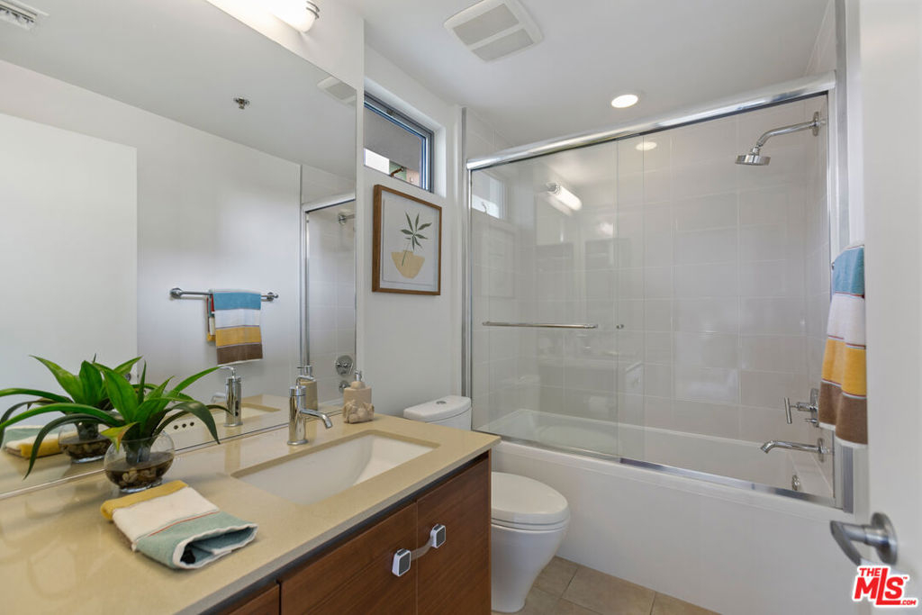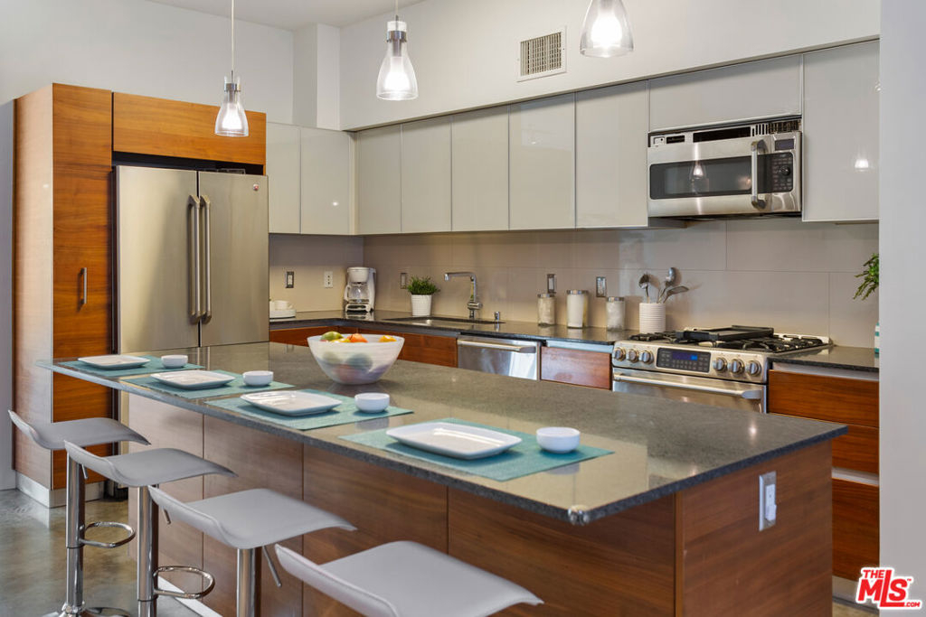 Gorgeous T-Lofts two-level 2bed/3 bath unit with 1,610sqft of indoor/outdoor living. The main level offers a bonus area with closet off of the entry that can be used as a 3rd bedroom or office space. Open concept kitchen with top quality contemporary design and finishes including GE Cafe stainless appliances, Italian cabinetry, a huge center island with ample seating. A tall glass roll up door opens up the living room space to create seamless access to a large outdoor private patio. The primary suite has an attached bathroom with tub/shower, double sink vanity, and walk in closet. 2nd bedroom has en suite bath. Wood floors upstairs. Gated access building, open courtyard, guest parking, fitness center, EV charging stations, and spa. In-unit laundry.