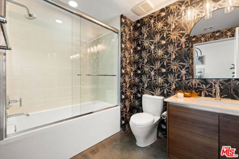 Sleek, sophisticated, and architecturally stunning, this rare end unit at T-Lofts offers the ultimate in modern Westside LA living. Soaring ceilings, expansive windows, and polished concrete and hardwood floors set the tone for this bright, two-story residence, thoughtfully designed for both form and function. With two spacious bedrooms, three full bathrooms, and a flexible bonus den perfect for a home office or creative space, the open-concept layout flows seamlessly from the chef's kitchen to the oversized private patio via an industrial-style automated roll-up door ideal for indoor-outdoor living and entertaining. Designer finishes throughout, numerous upgrades, custom built-ins, and contemporary touches abound, including Caesarstone counters, stainless steel appliances, reverse osmosis water purification, recessed lighting, and a luxurious primary suite with a spa-like bathroom and walk-in closet. Set within a secured, beautifully landscaped, eco-conscious community in the heart of Sawtelle, residents enjoy resort-style amenities including hot tub and outdoor shower, BBQ area, fitness center, package lockers, multiple outdoor seating areas and unbeatable access to LA's best dining, shops, and coastal conveniences. Two side by side parking spaces next to the elevator, 35 guest spaces, electric car charging and bike racks. Welcome to West LA loft living at its finest.