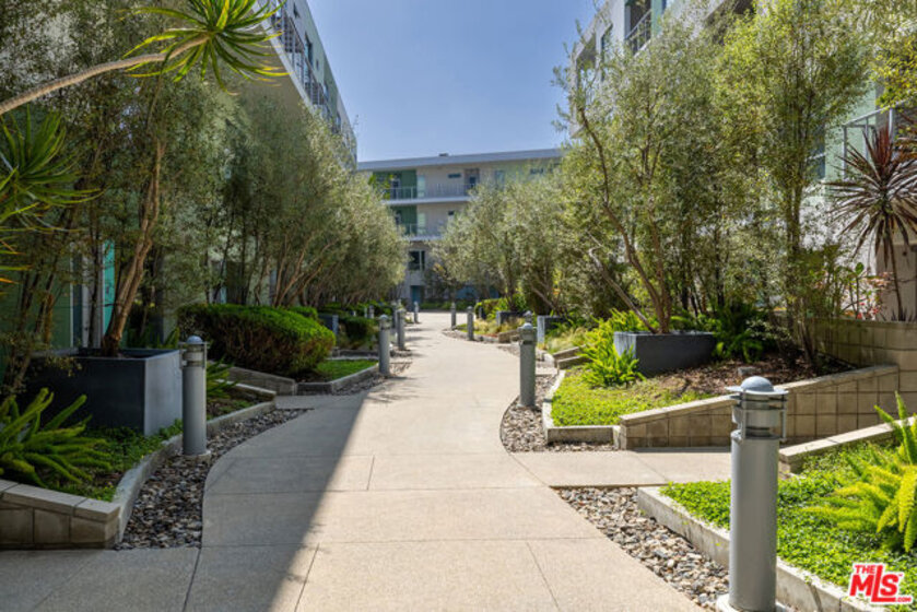 Sleek, sophisticated, and architecturally stunning, this rare end unit at T-Lofts offers the ultimate in modern Westside LA living. Soaring ceilings, expansive windows, and polished concrete and hardwood floors set the tone for this bright, two-story residence, thoughtfully designed for both form and function. With two spacious bedrooms, three full bathrooms, and a flexible bonus den perfect for a home office or creative space, the open-concept layout flows seamlessly from the chef's kitchen to the oversized private patio via an industrial-style automated roll-up door ideal for indoor-outdoor living and entertaining. Designer finishes throughout, numerous upgrades, custom built-ins, and contemporary touches abound, including Caesarstone counters, stainless steel appliances, reverse osmosis water purification, recessed lighting, and a luxurious primary suite with a spa-like bathroom and walk-in closet. Set within a secured, beautifully landscaped, eco-conscious community in the heart of Sawtelle, residents enjoy resort-style amenities including hot tub and outdoor shower, BBQ area, fitness center, package lockers, multiple outdoor seating areas and unbeatable access to LA's best dining, shops, and coastal conveniences. Two side by side parking spaces next to the elevator, 35 guest spaces, electric car charging and bike racks. Welcome to West LA loft living at its finest.