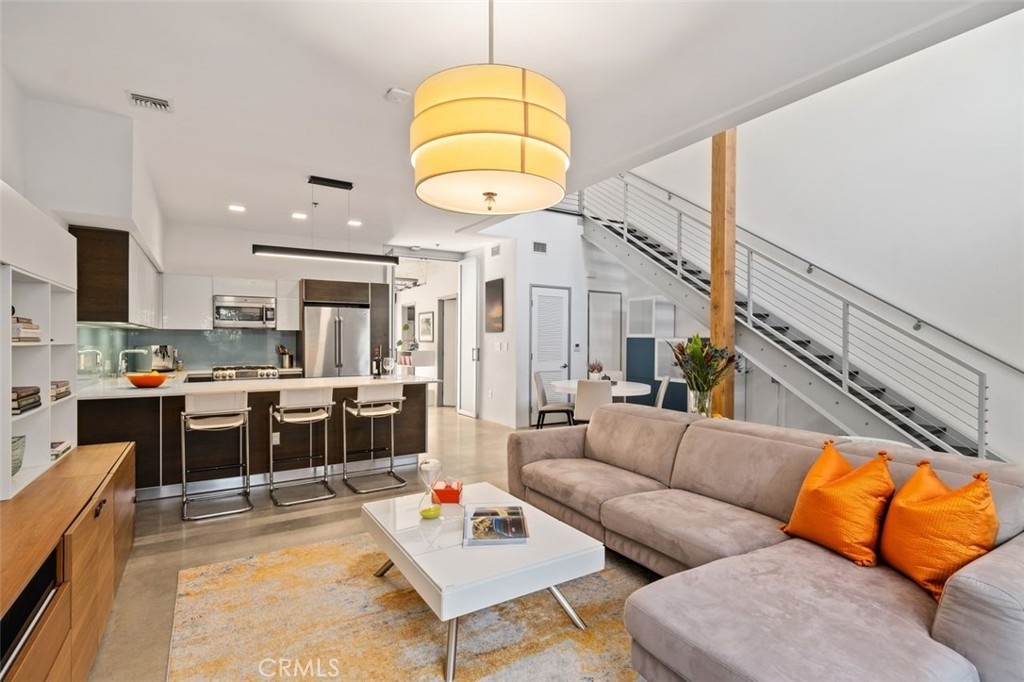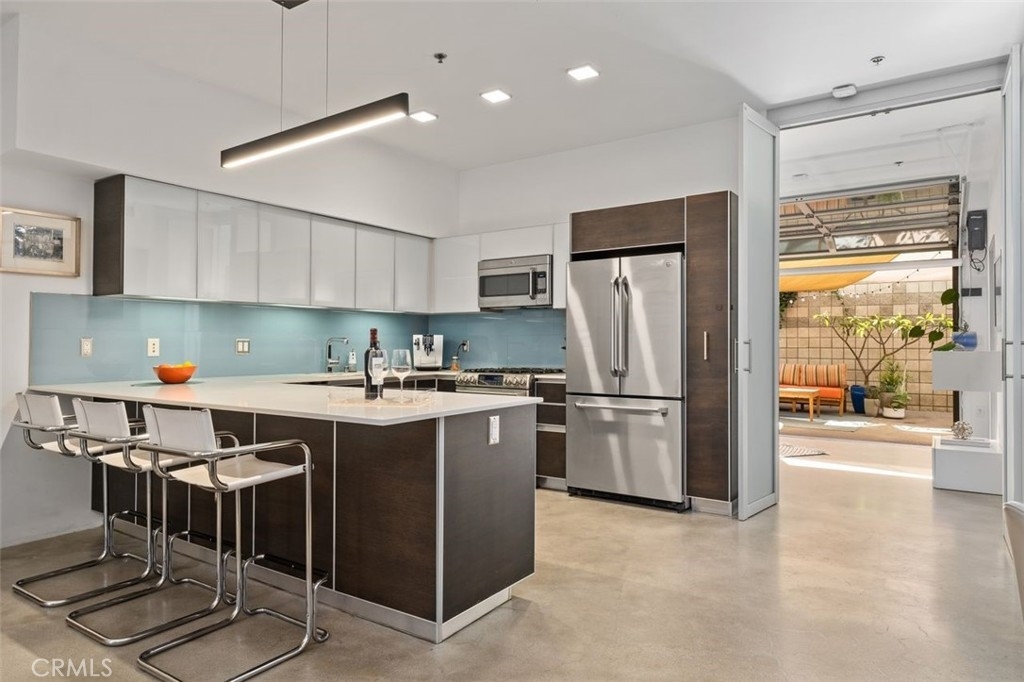Sophistication and elegance are presented in this unique, highly desirable loft-style townhome at the well-known T- Lofts condominiums in West LA. It is centrally located between Santa Monica and Century City. The beautiful lounge area in the lobby leads to the sumptuously maintained grounds. The sizable front patio area of the home welcomes you to This architectural home is appointed with high ceilings, concrete floors on the ground level and wood floors on the upper level with a very open concept layout. Large windows allow the natural light to graciously enter the living areas. The gourmet kitchen has plenty of storage, Caesar Stone countertops, frosted glass upper cabinets and stainless-steel GE appliances including a beverage refrigerator. There is one bedroom/office on the ground level with its own bathroom, walk-in closet with built-in cabinets. This room also features a roll-up glass garage door that opens to a spacious patio for relaxing or entertaining where you can enjoy an evening dinner or morning coffee. The stairs in the great room lead to the primary bedroom with its full bathroom, featuring double sinks, soaking tub, separate shower, enclosed toilet room and a nice walk-in closet with built-ins. The primary bedroom opens to a balcony overlooking the landscaped courtyard. The third bedroom is bright with a bathroom and wall closet with built-in cabinetry. The laundry is on the ground level, and it has a new Miele stack washer and dryer. The AC unit was recently replaced with a brand new Daikon system. The great room has a new Lutron lighting system with various scenes and all the recessed ceiling light fixtures throughout the home have been replaced with square warm white Philips LED fixtures. Amenities in this Complex include two elevators, a gym, spa hot tub, two BBQ grilles and eating area, electric car charging stations, bike racks, secured entry, ample guest parking. Two individual parking spaces come with this unit. Great walkable location to the trendy “Little Japan” area on Sawtelle with its wonderful restaurants and tea bars. Starbucks, Trader Joe’s, and many other well-known shops are also within walking distance. Close vicinity to the Expo Line, 405 and 10 freeways, Westwood, Santa Monica, Brentwood, and Century City. Here is your great opportunity to own a unique downtown loft on the Westside of LA.