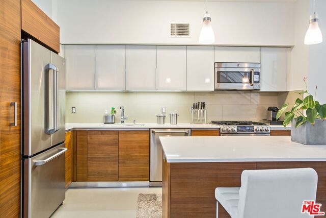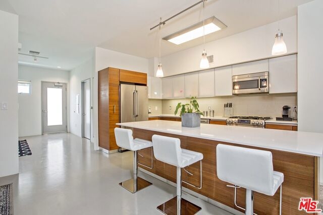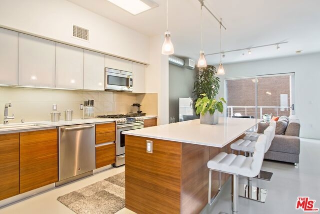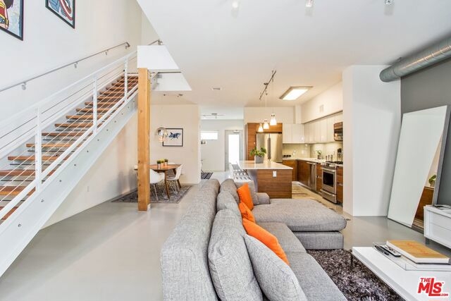 Architectural Masterpiece nestled in the heart of West LA; the T-Lofts were built in 2009 with high-end finishes and plenty of amenities. This two Level Loft unit features 2 bedrooms, plus Den and 3 full baths with Kohler fixtures, Kitchen with GE appliances, soft closing drawers, concrete floors, balcony, and high ceilings. The two bedrooms are located upstairs providing separation and privacy. The master bedroom has a bath with separated shower and tub, and a large walk-in closet. Secured building beautifully landscaped and features a BBQ area, Gym, and Hot Tub. Two parking spaces are included with the unit, and the building features tons of guest parking and electric car charging stations. Very low HOA's. One of the best buildings in Los Angeles.